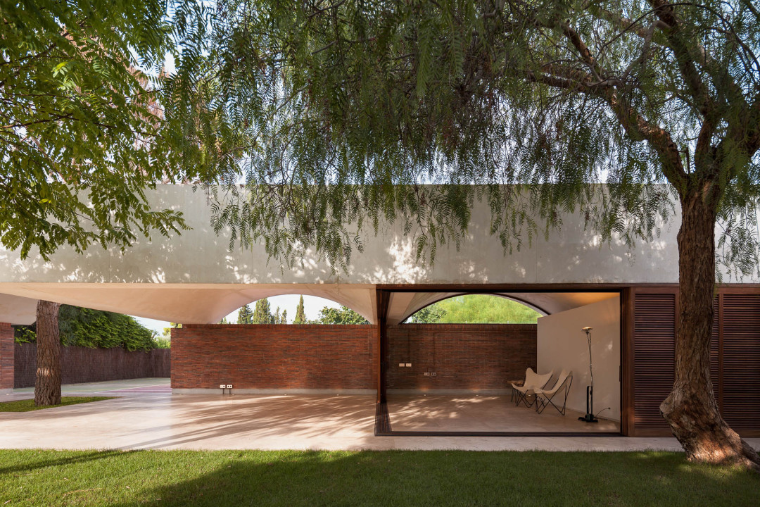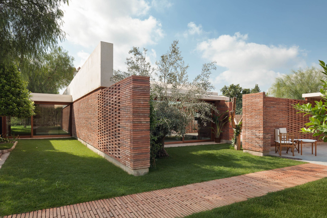 Limestone was eventually used to integrate a terrace and pool seamlessly into the existing structure, had been found in nearby Girona, left over from another project. The recycled marble pieces came in all different sizes, creating an intricate floor pattern, in which every piece was painstakingly carved to fit—true to the name of Peratallada, which means carved stone. An evenly meticulous procedure created the look of Casa IV, an award-winning residential project in the countryside outside of Elche, in the southeast of Spain. As part of a play with the house’s indoor and outdoor spaces, horizontal lines were accentuated by one central element: a thin and oblong brick, designed and produced in collaboration with a local ‘bobila’ (brick maker). “We became obsessed with not having to cut those bricks for the layering,” laughs Iborra Wicksteed. Hence no material was wasted in the process.