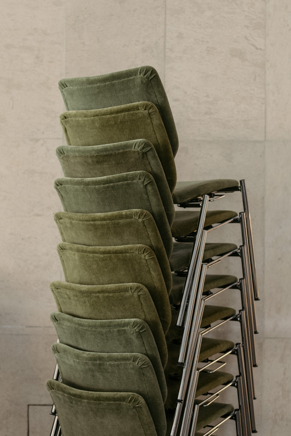 Stacked chairs at the concert hall of Gewandhaus Leipzig.