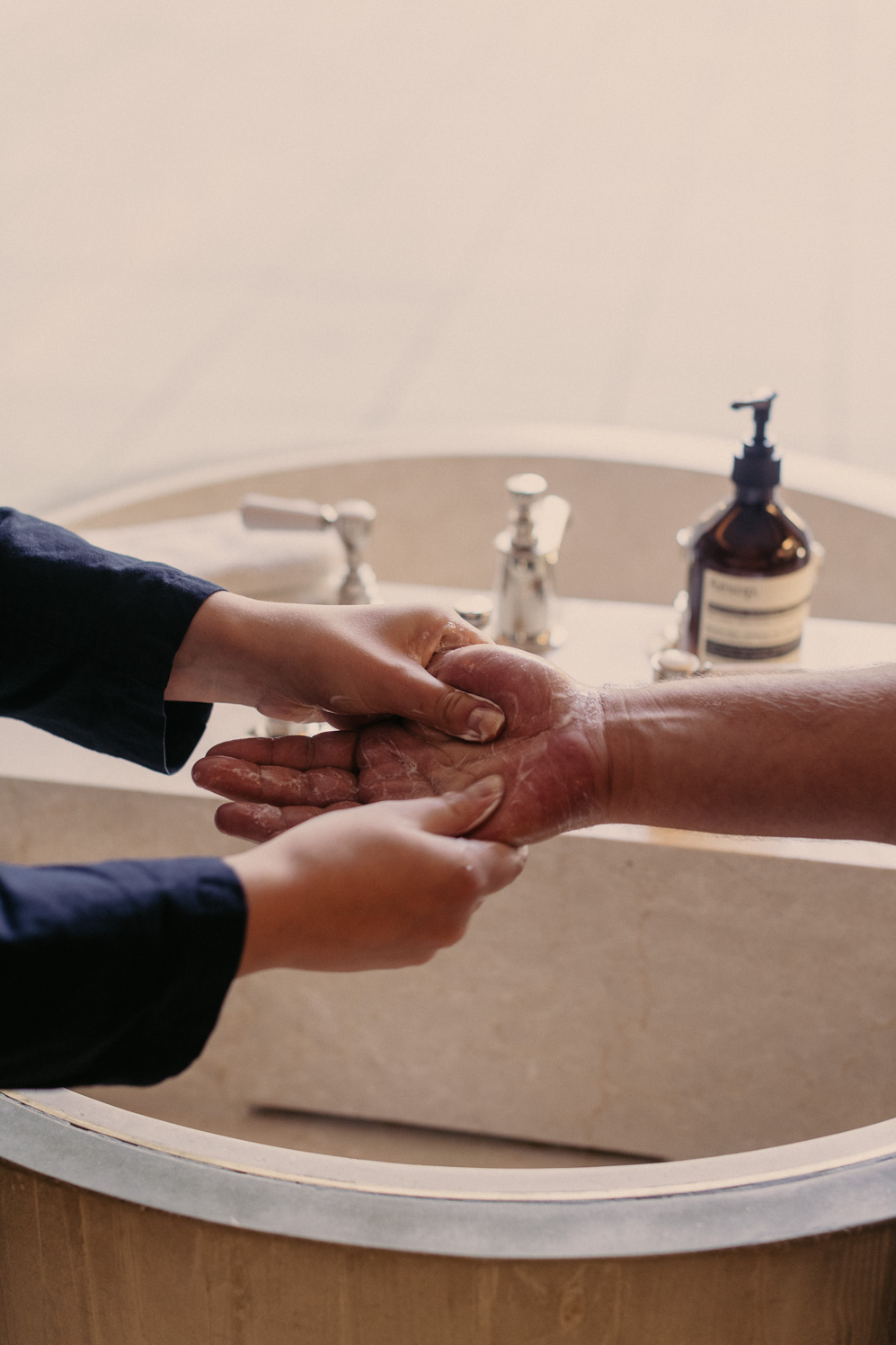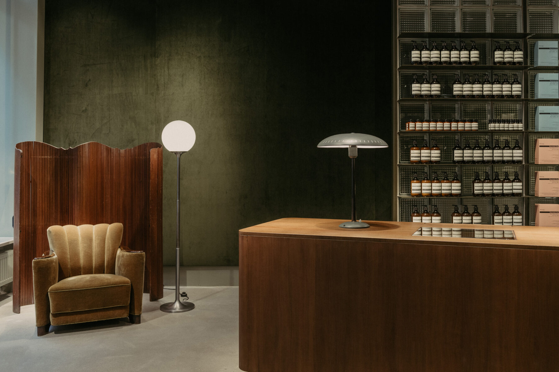 “To combine rugged concrete and soft velvet in a way that makes them indivisible—without being too obvious,” says Thiersch. Celebrating divergence and single bricks that, in combination, create a harmonious togetherness: “Interior design can do more than just make something visually more appealing. It can approach a person in a different way, on a deeper level.” A Leipzig local who was astounded by the store’s design, called him up, though he could not quite articulate why. “Aesop promotes this kind of relevant design like no other brand,” Thiersch says. “It’s important to note: It’s not all beautiful. You also have a responsibility for the city and its history.” Creating a shared vision with Aesop allows for design that, as Thiersch points out, “reconciles beauty and trauma, wealth and blame, courage and fear.”