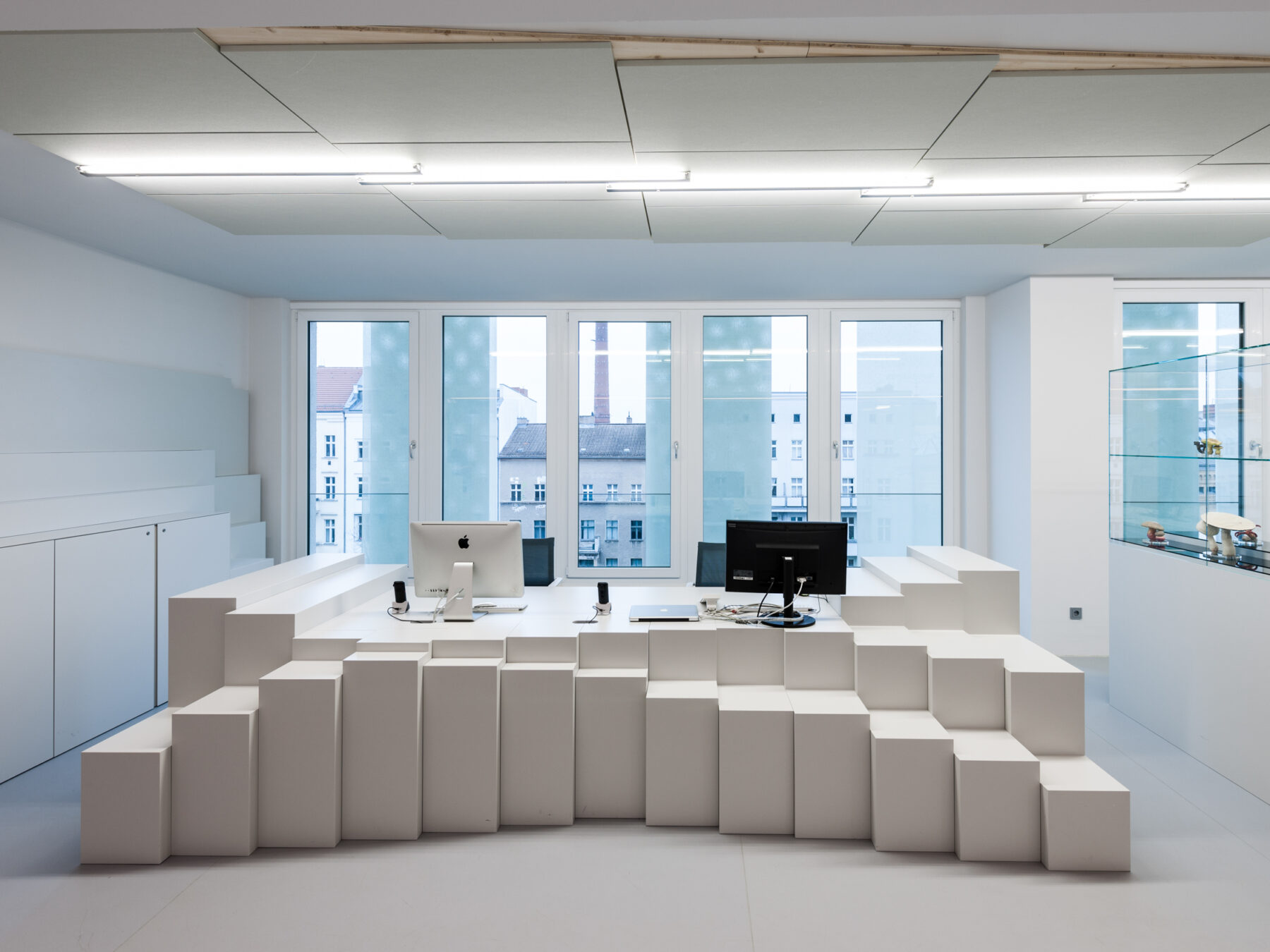 Emboldened by their overall creative experience (and success) with the center, Haase and Pierre Jorge headed to Berlin on the cusp of the new millennium, where they founded their eponymous practice. “There was a gallery boom in Berlin then, and coupled with the experience we already had, it felt very much like we were in the right place at the right time.” It was, however, a boom characteristic of Berlin at that time, in that—to put it bluntly—there was not much money for gallerists to splash on expensive architecture and scenography. “People still wanted to really create something though,” says Haase. “With no money, we had to find a way to come up with a super-nice concept that worked with the materials that fitted our budget.” It was a challenge that Haase and Pierre Jorge embraced head-on. “Out of this came a language. Our designs became something recognizable.”