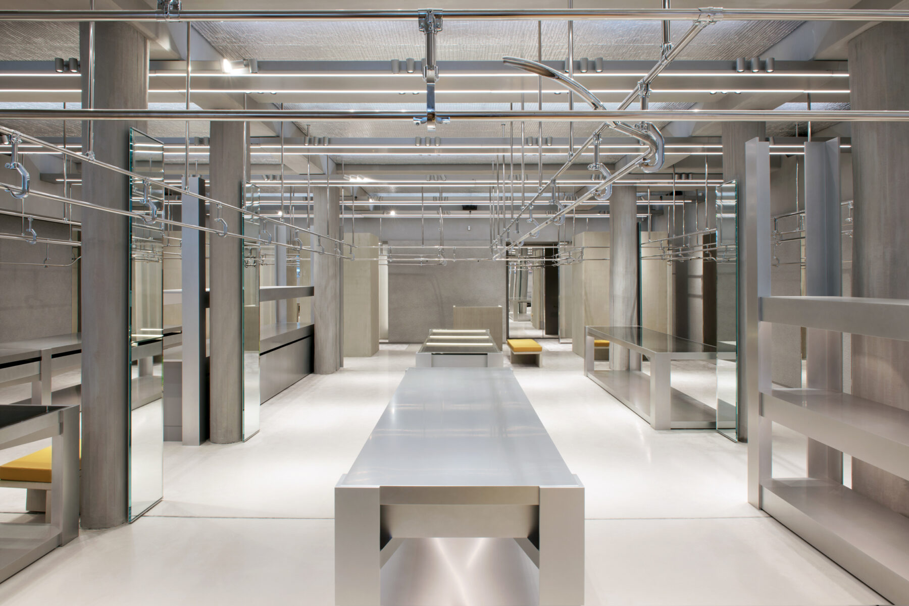 Beyond the self-deprecation however lies a slightly more serious consideration. By crafting beautiful spaces from materials more commonly thought of as durable rather than beautiful, Judith and Pierre Jorge highlight the unsustainable, empty facades that define so many supposedly luxurious interiors. “I mean, you can go into a fashion boutique and everything looks so expensive—marble everywhere, incredibly expensive lacquers on the wood… but then five years later the brand gets a new creative director and everything has to change all over again. It all becomes garbage.” Haase is optimistic that people are becoming more attuned to this, a view supported by the number of high-profile requests for that Berlin style. She points in particular to the recent refit of the flagship Balenciaga store in Paris, and the brand’s current Creative Director, Demna Gvasalia, in whom she has found an unlikely kindred spirit. When she talks about his approach to design she could just as easily be talking about that of her own practice. “He gets how boring the fashion world is when people want expensive things just because they look expensive. I really think he’s an artist, and he brings an intellectual approach that people actually want now—one that allows them to see behind [the surface level].”