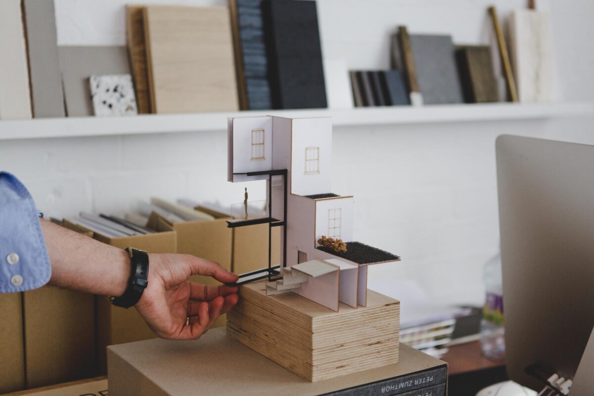 After an extended, educational interlude about the unusual clay walls that cloak the interiors in soft hues of greens and grey, it becomes apparent that Simon is eager to leave behind the still, elegant interiors of Plywood House and his own home. As the hours of the working day melt away into a brisk early evening jaunt along the side of a canal towpath, the final destination on the Simon Astridge tour comes into view: the no frills King’s Cross office in which all his ideas become manifest. That’s where FvF leaves Simon, pouring over blueprints and the scale models so central to his way of working. Doing as a way of being. Verbs over nouns, always.