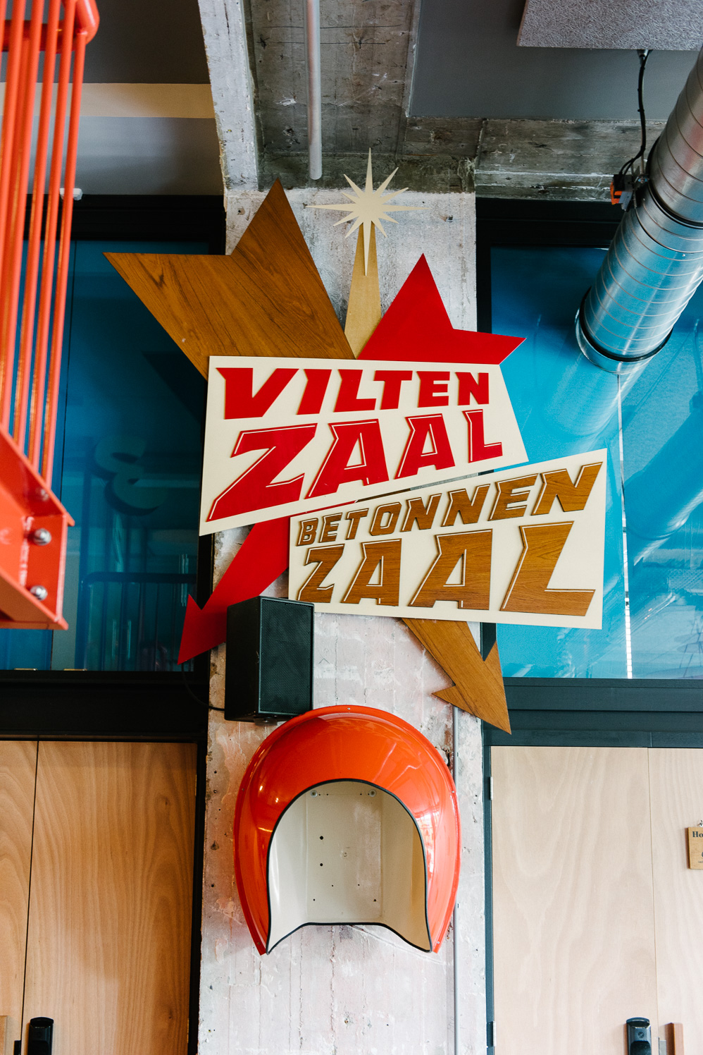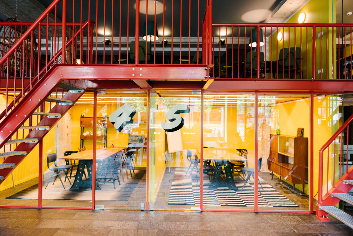 The colorful and creative workspaces that sit at the base of the Volkshotel.