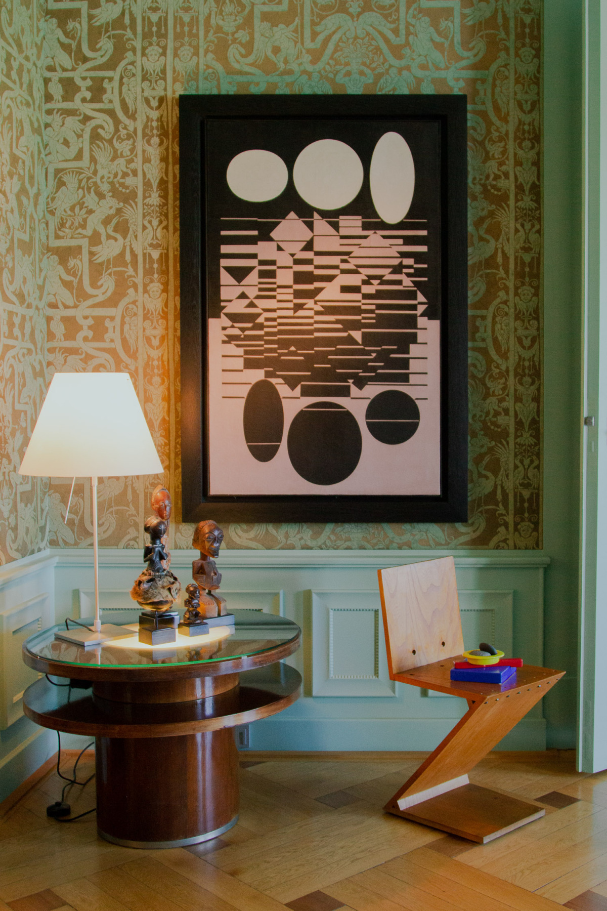 Mehdi’s collection includes works by Victor Vasarely and Gerrit Rietveld.
