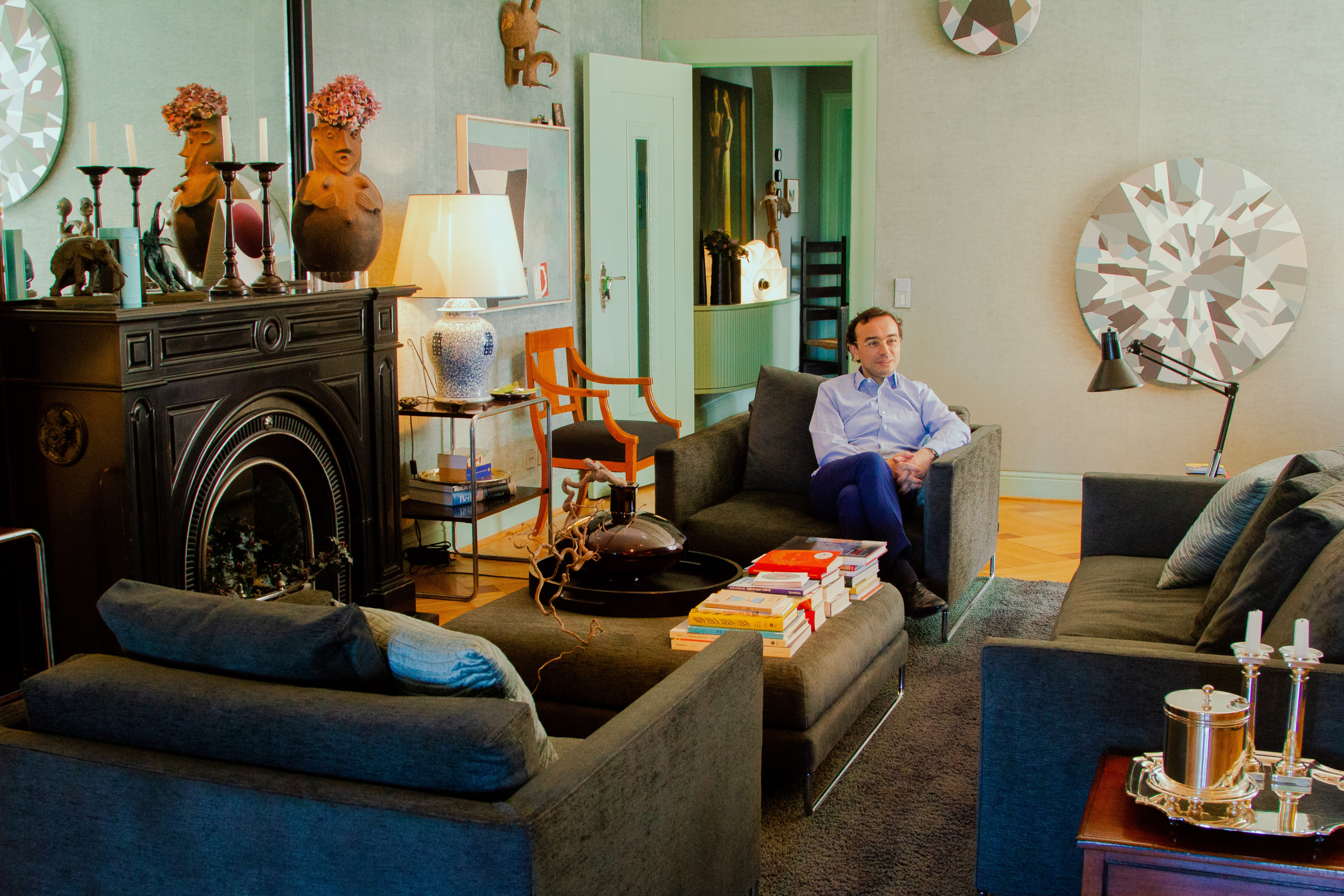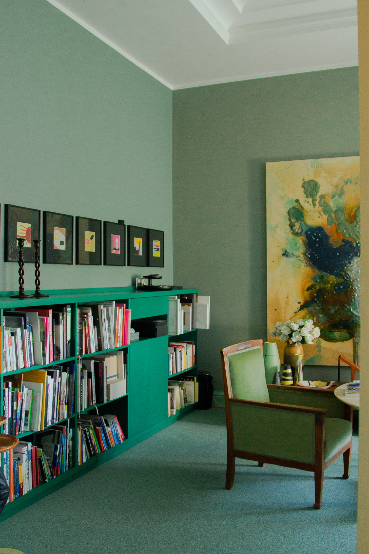 Mehdi’s Berlin home is a treasure-trove for a purveyor of design, the sort of wonderful, truly idiosyncratic space that would not be amiss on a movie screen. The colors are bright but tasteful—cobalt, cerulean, and seaweed against cool, soothing neutrals.