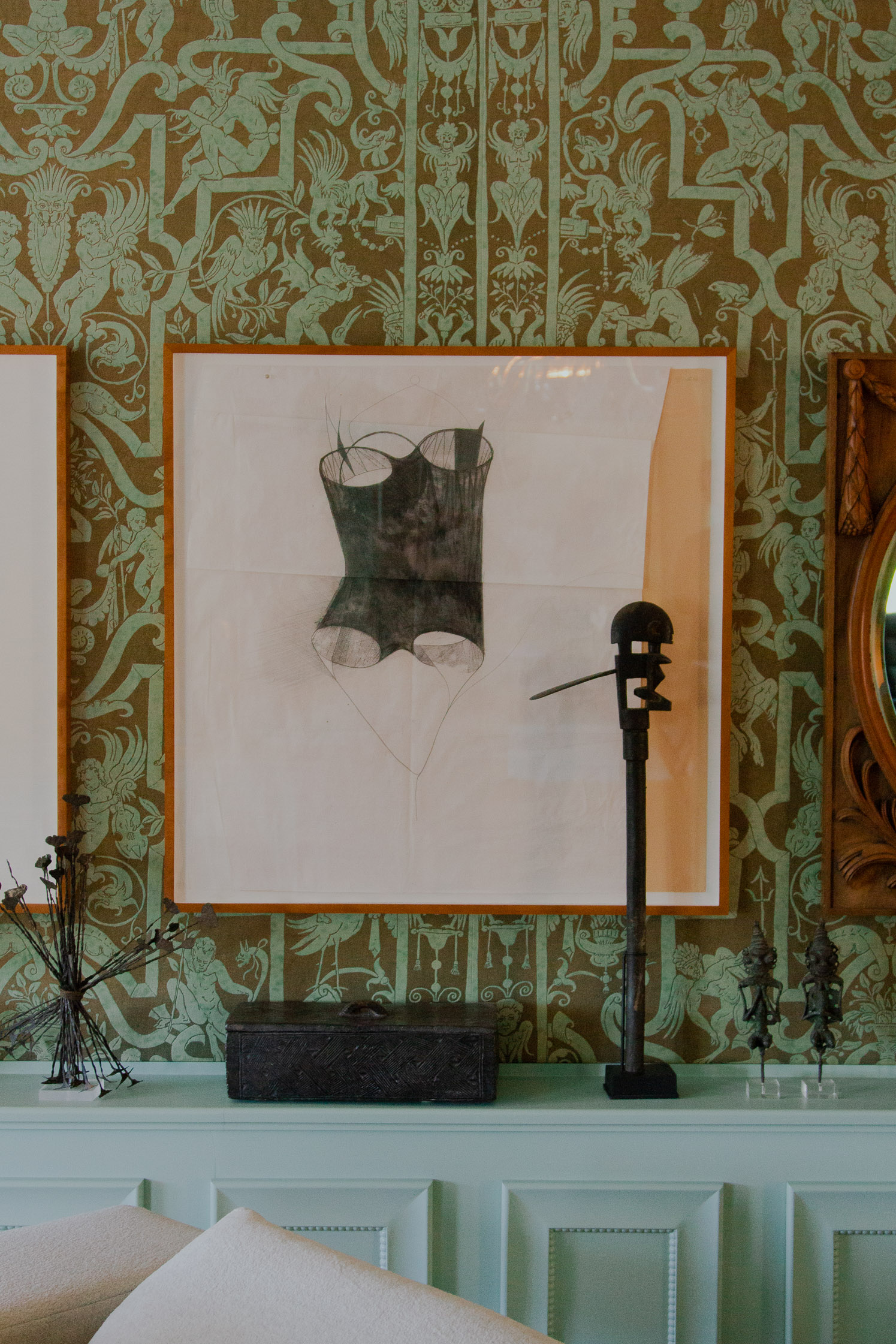 It’s eclectic, but also crafted with a palpable sense of care. One particular room in the apartment, “a novel room”, is being covered wall-to-wall with a mosaic mirror, an artwork by Swiss artist John Armleder: “Imagine a 360 degree mirror, made of mosaic. So you have infinite reflection and atomization of all that’s being reflected by the light.”