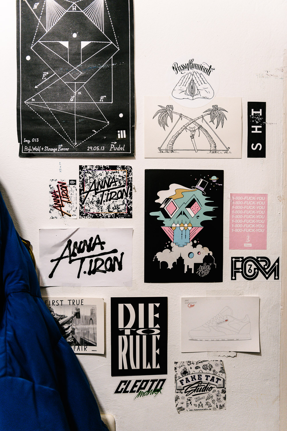 Her apartment is in a building that dates from the sixties: fit with brown walls and green balconies. “I may be a real ‘king of procrastination’ but I was also like that in our shared studio, the WeRunThis workspace. If I couldn’t concentrate, I always found something to do like cleaning the windows.” Despite the mindless cleaning, she has a steady stream of work. Sometimes, she designs logos for a small record companies, or graphics for T-shirts. She develops corporate identities, paints murals in public spaces and works on major projects for a variety of clients. Hand-lettering, illustrations, typography design, logos—Anna can basically do anything with letters. “It was always about lettering. Whether it was graffiti or the innumerable scribbles I did at my school desk instead of paying attention.”