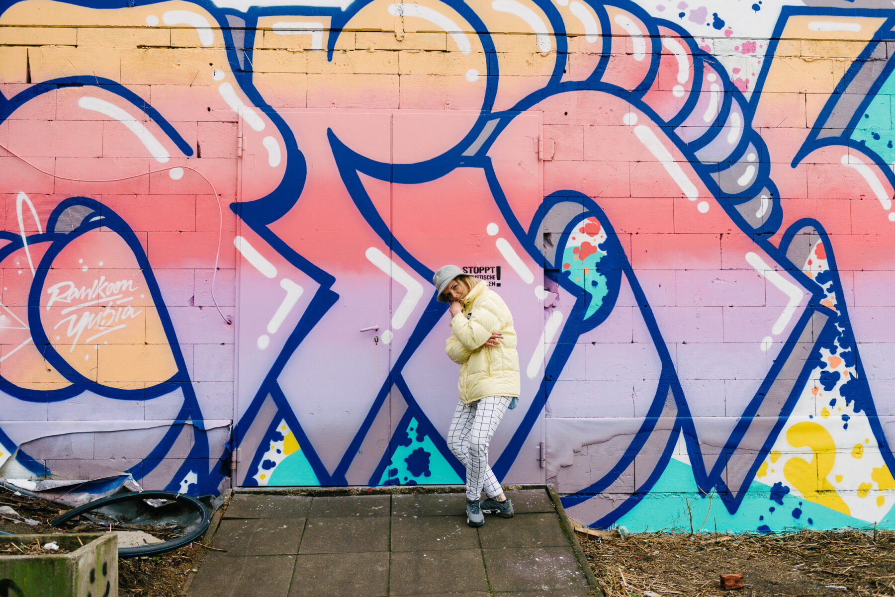 “Wilhelmshaven is to the right, empty space to the left and in between—about 25 to 30 kilometers from the North Sea coast—you’ll find Aurich.” Even if you could barely tell from her accent, Anna is East Frisian—born in the 40,000-resident city, the main attraction of which is an indoor skate park that was once the largest in Germany. “Back then, there was a really nice hip-hop scene in East Friesland. Probably because there wasn’t much else to experience, everyone in my generation identified with music culture. There wasn’t a lot to choose from: you were either into hip-hop or techno, and I was more into hip-hop than everything else.” When Anna was hanging out with her friends one evening, they drank beer and passed the time by sketching graffiti. “I thought to myself that I’d end up showing them what a complete toy I was. A total beginner. But then they liked it. The next day, the boys got their cans together and made room on a wall in the indoor skate park. That’s where I made my first piece. I’ve got a picture somewhere of myself posing in front of the image.”