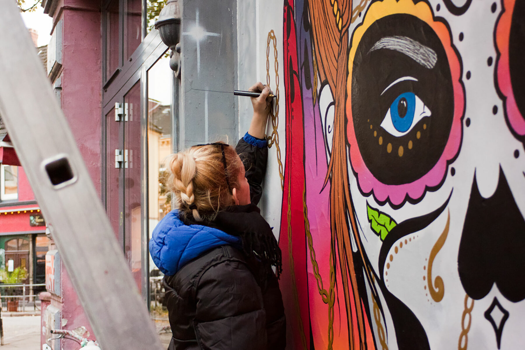 Anna in front of the Mural she created during the 2015 STAMP festival in Hamburg-Altona