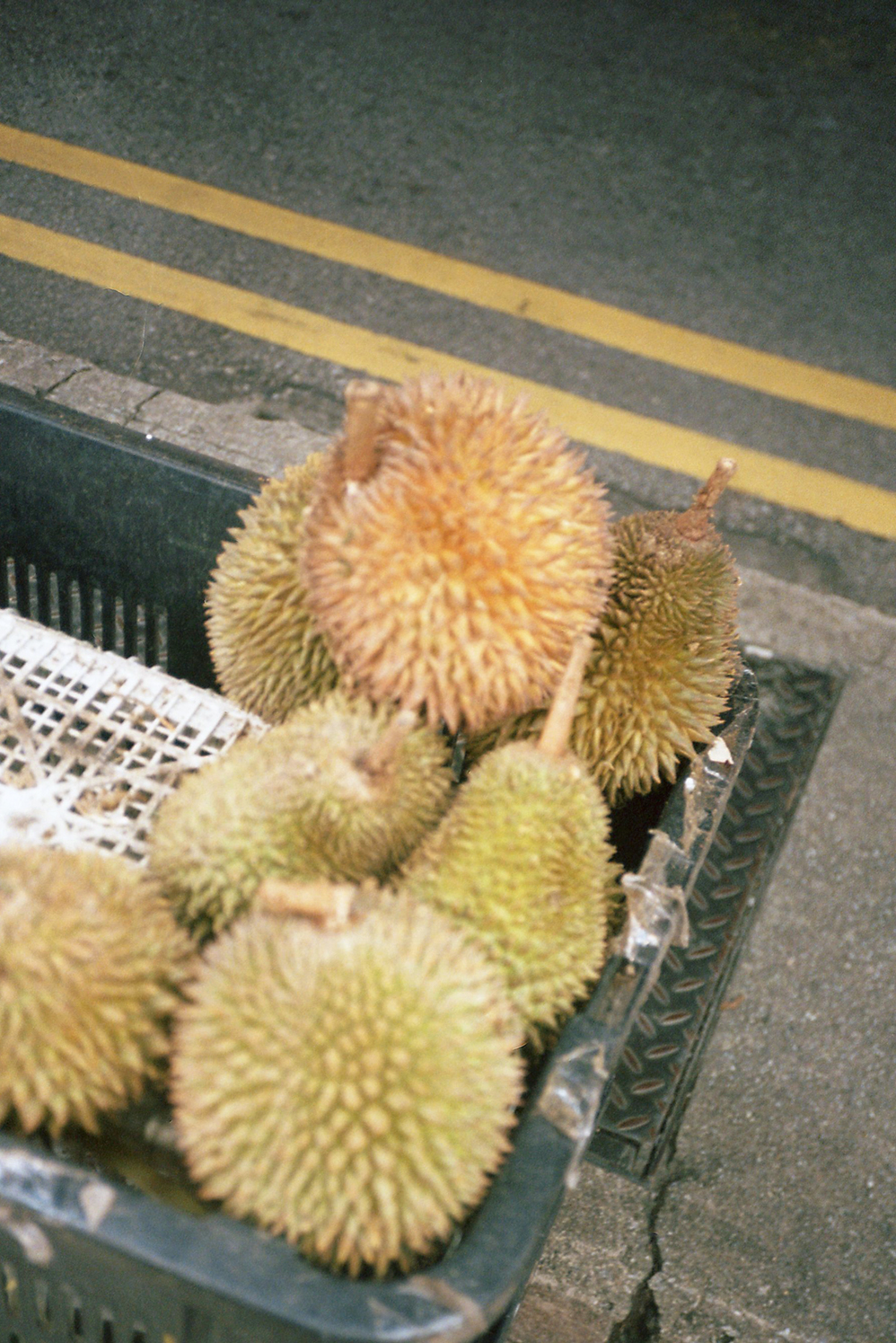 “This is probably the most iconic subject amongst the photographs—the durian. This is a fruit that, in all its beauty (and intensity), divide people into two camps: lovers and haters. I proudly belong to the first camp and have fond memories of gathering round a roadside table under the fluorescent lights in the cool night air feasting on its custard-like flesh.”