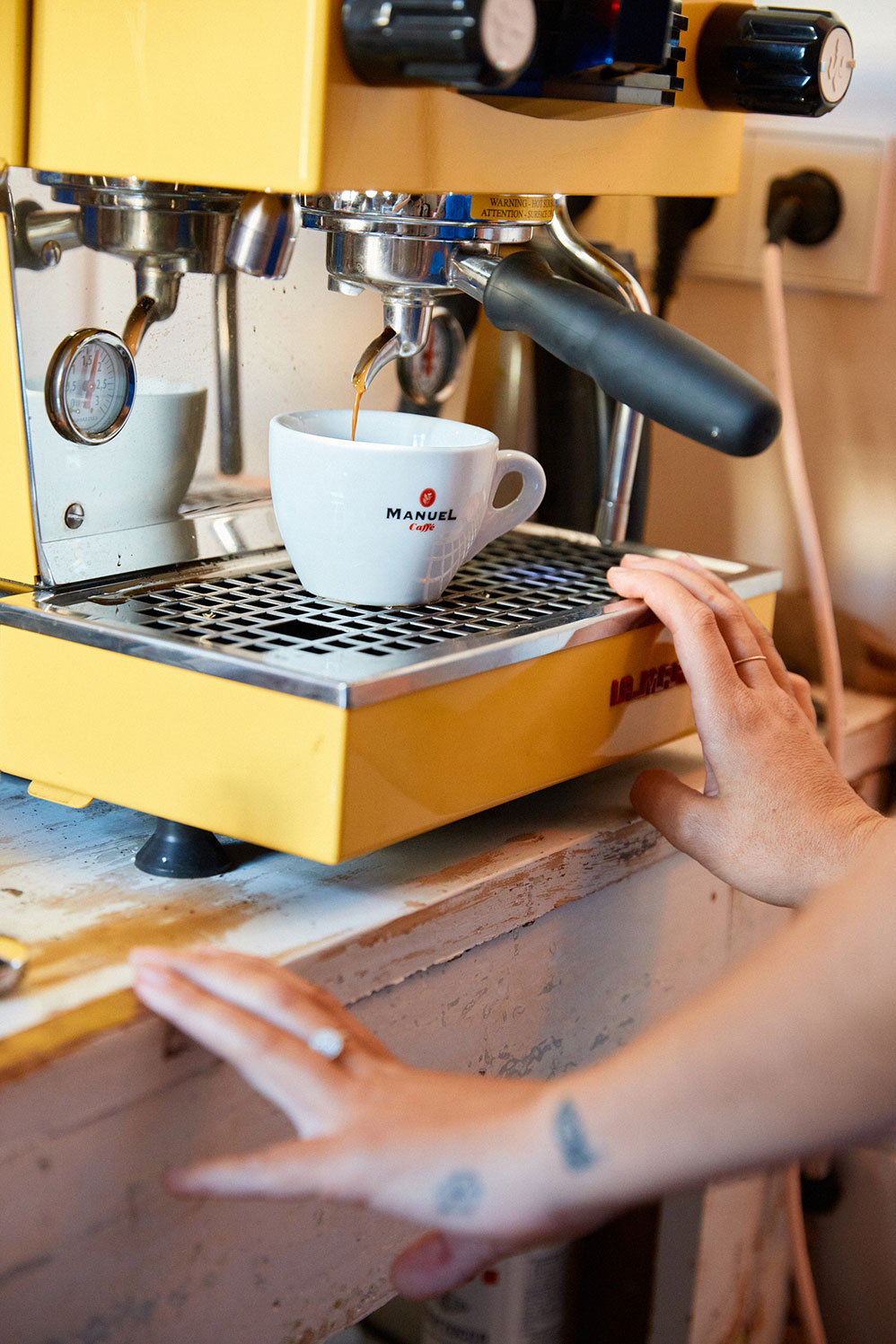 As coffee and design enthusiasts, the couple invested in a La Marzocco coffee machine for the space.