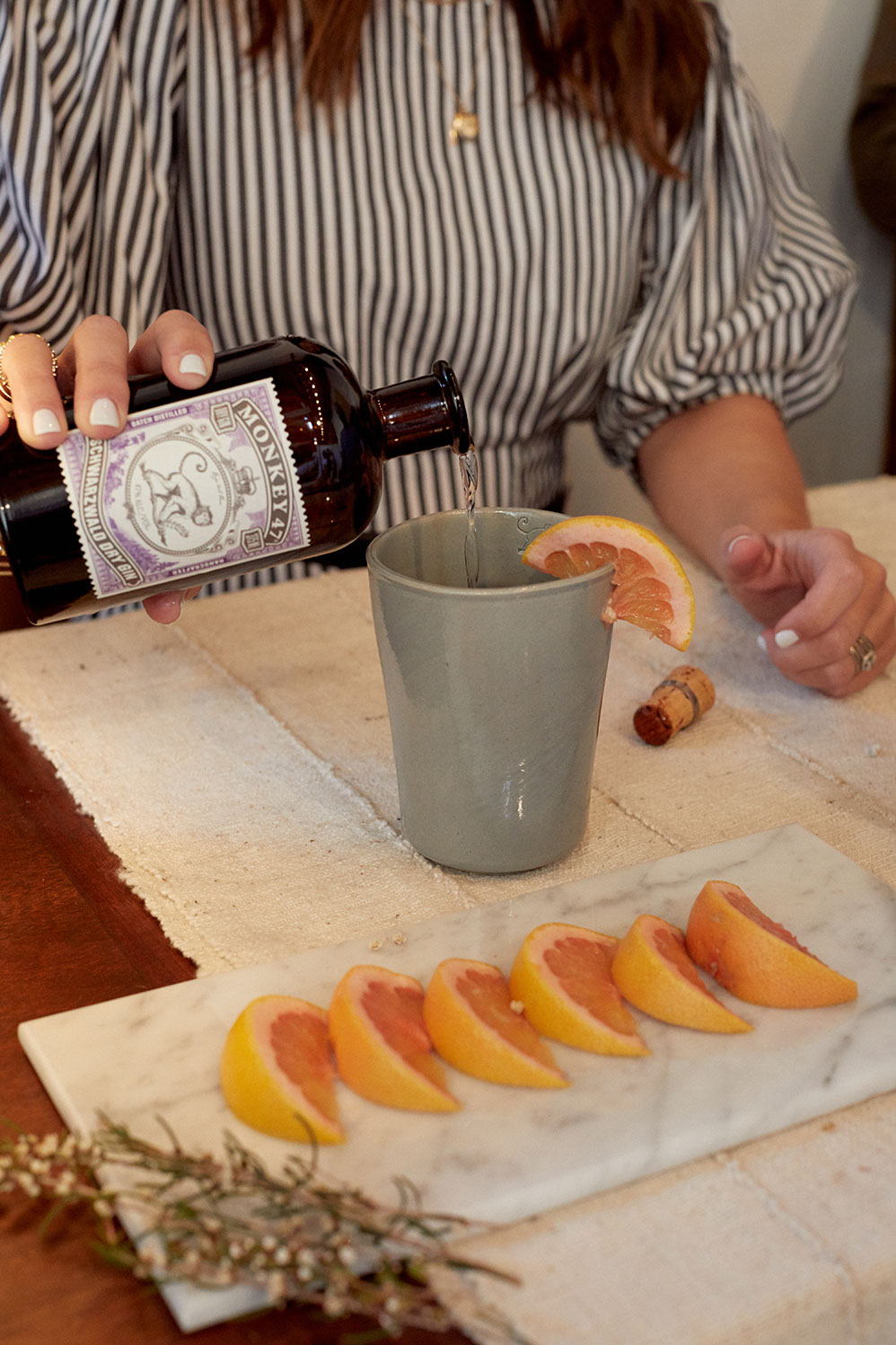 Thomas Renaud, Alchemy Works co-founder Lindsay Parton, and Noel Hennessy sharing Monkey 47 gin and tonics at the Arts District Alchemy Works space.