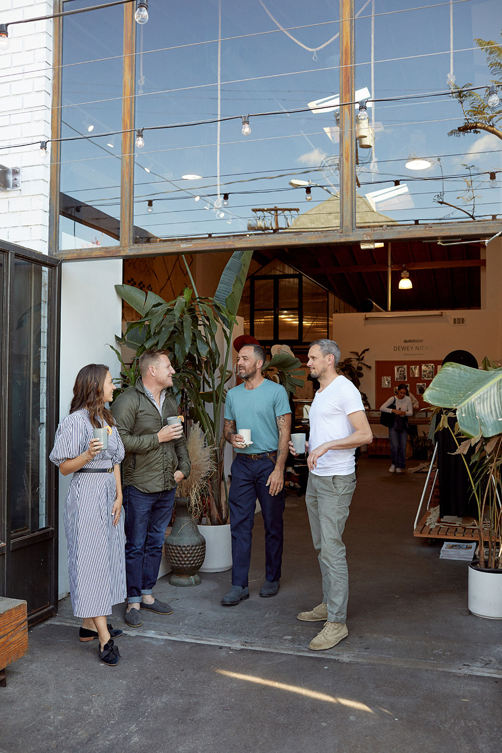 Gathering at the entrance to Alchemy Works, the retail, gallery, and event space in the Arts District.