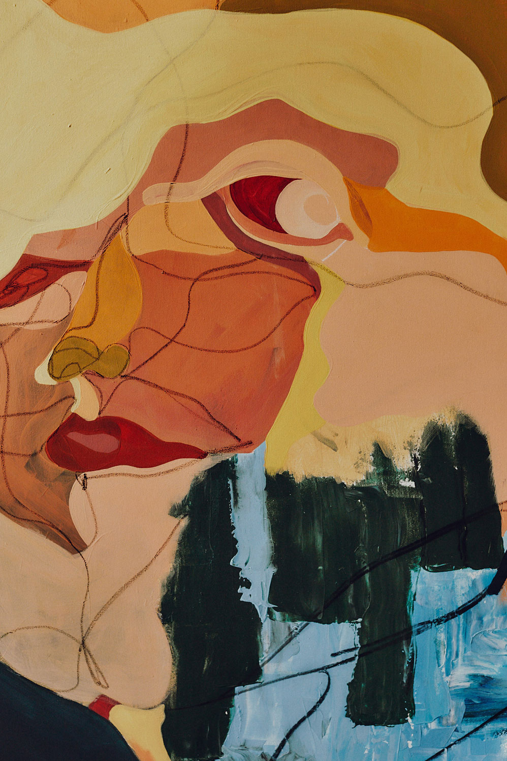 The Brazilian-born artist describes her work as “a dance on the fountain of admiration,” but like many of the painters who inspire her, she’s not afraid of letting that admiration teeter on repulsion. Surrealism is a big influence on the 24-year-old Saraiva, as is Freud’s theory of psychoanalysis, which was the topic of her first thesis and informs many of her works. “Psychoanalysis is basically concerned with decomposition and rearrangement,” she says. “This decomposition creates more room for clarity. Clarity creates power.”