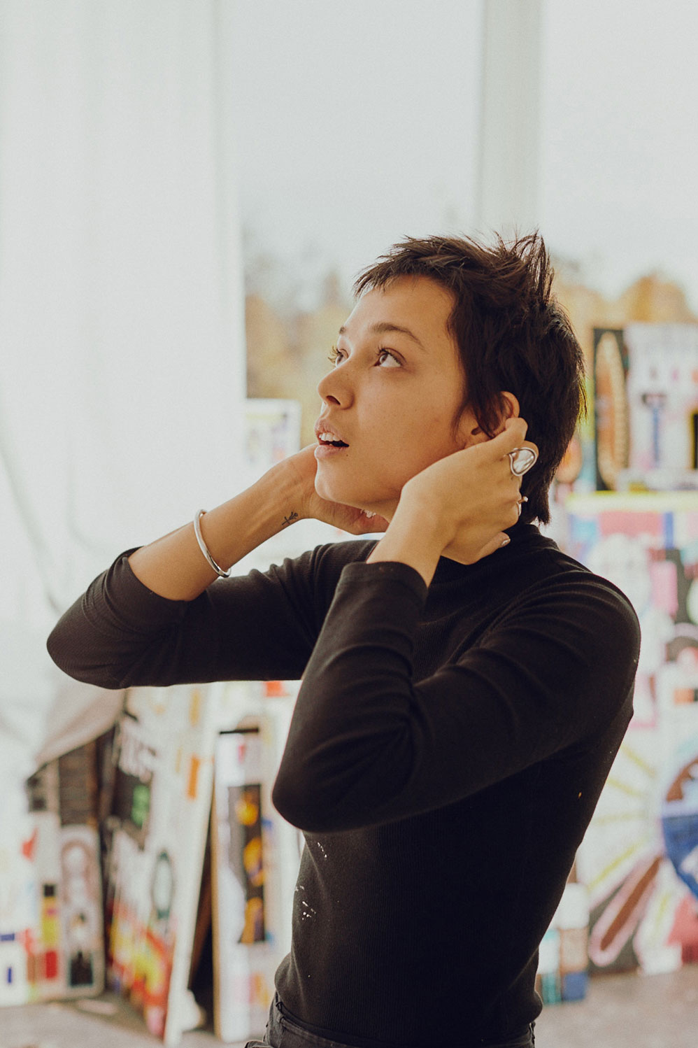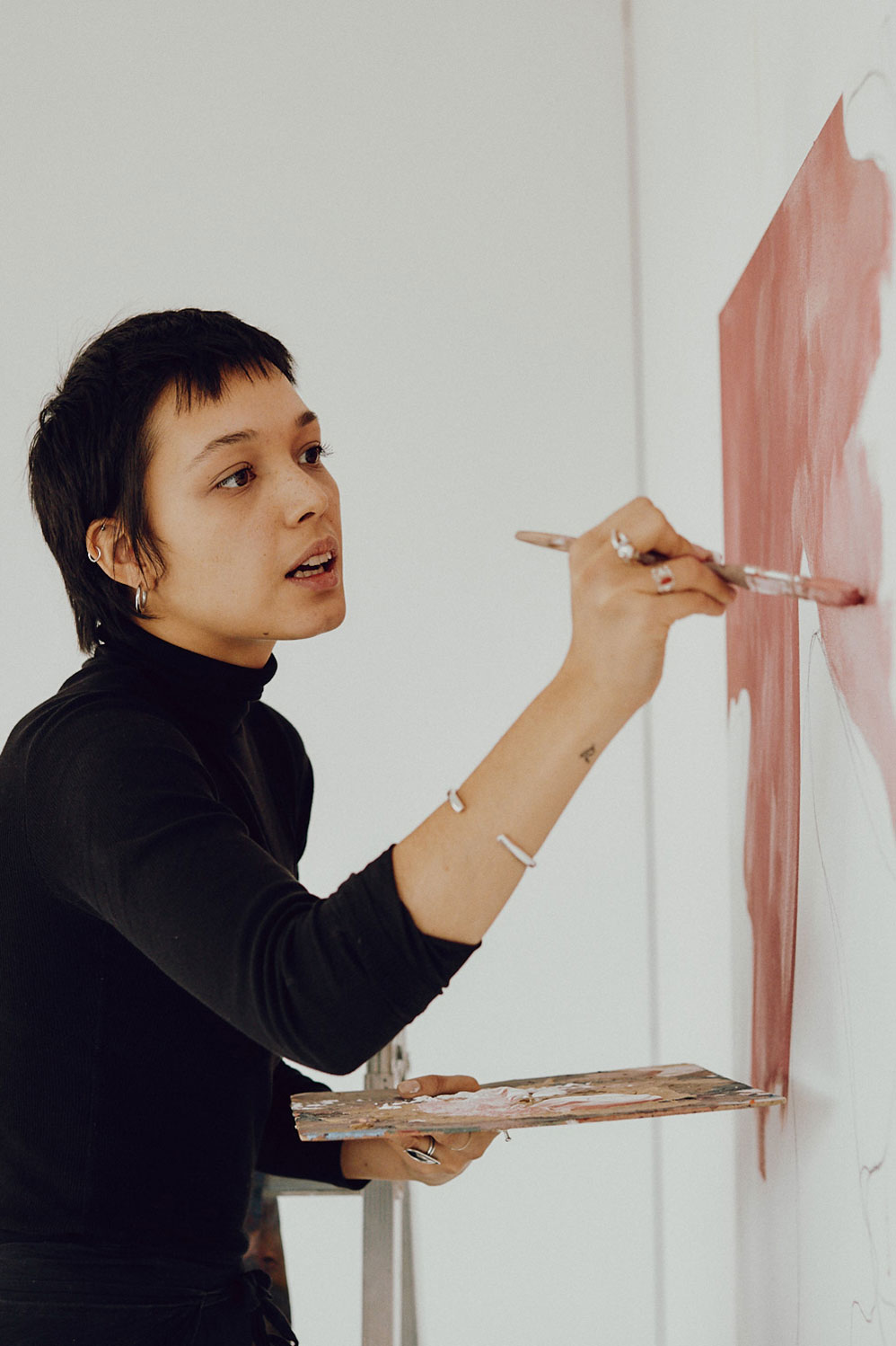 Saraiva’s interest in the female body started long before she decided to study art with a focus on painting at the Academy of Fine Arts Munich in 2018. Having worked as a model since the tender age of 15, Saraiva was confronted early on with the demands of the fashion industry. Gradually, though, she found her alternative look to be in high demand and learned to accept herself for who she was. “My appearance has always been difficult to pin down to a ‘typical’ image of a women,” she says, “so as a model, I was often booked for quite creative and edgy jobs.” Later her apprenticeship in classical sculpting, which intensively dealt with the human body, furthered her understanding of the beauty and diversity of the human form. She has now turned her back on the modelling business altogether and solely focus on her art.