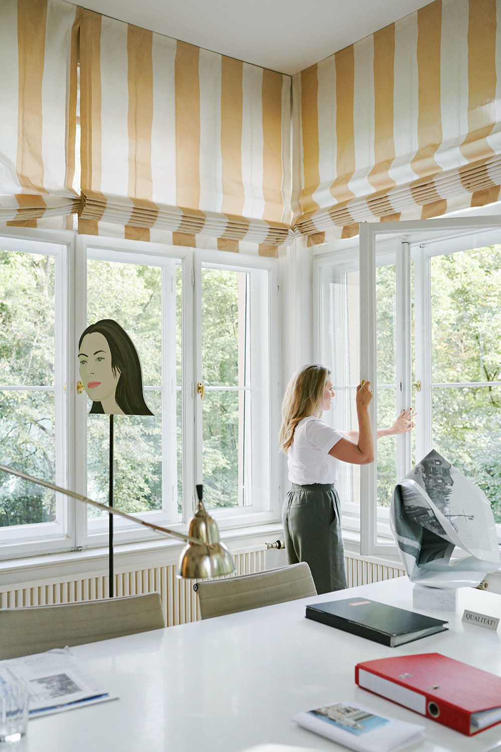 The offices of Galerie Klüser, which, founded in 1978 by Bernd Klüser, was one of the first galleries to show the work of German artist Joseph Beuys. Alex Katz, Ada, 1999, Metal Cutout, Ed. 18, Courtesy Galerie Klüser/the artist. Olaf Metzel, Real Estate (3), 2016, Aluminium, stainless steel, Courtesy Galerie Klüser/the artist.