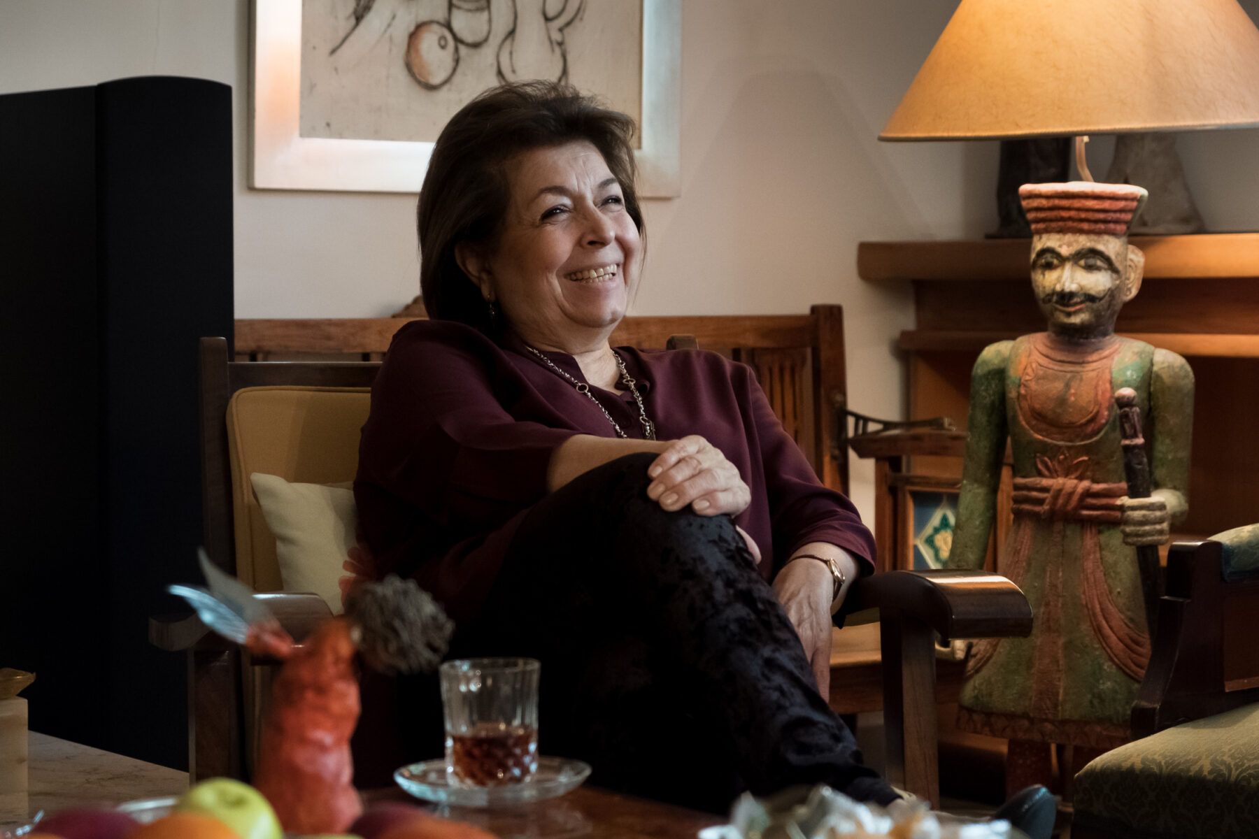 Golestan is the owner and artistic director of the Golestan Gallery as well as the translator of 34 books, and undoubtedly one of the most influential characters in Tehran’s contemporary art scene. Straight to the point, she’s is nothing if not frank: “I always say what I think.” Her wardrobe is also impeccable: velvet pants, a bourbon-colored blouse, matching jewelry, and black pumps. Her hair is perfectly coiffed. “I know you don’t see it, but I’m 74-years-old this year,” she says, grinning.