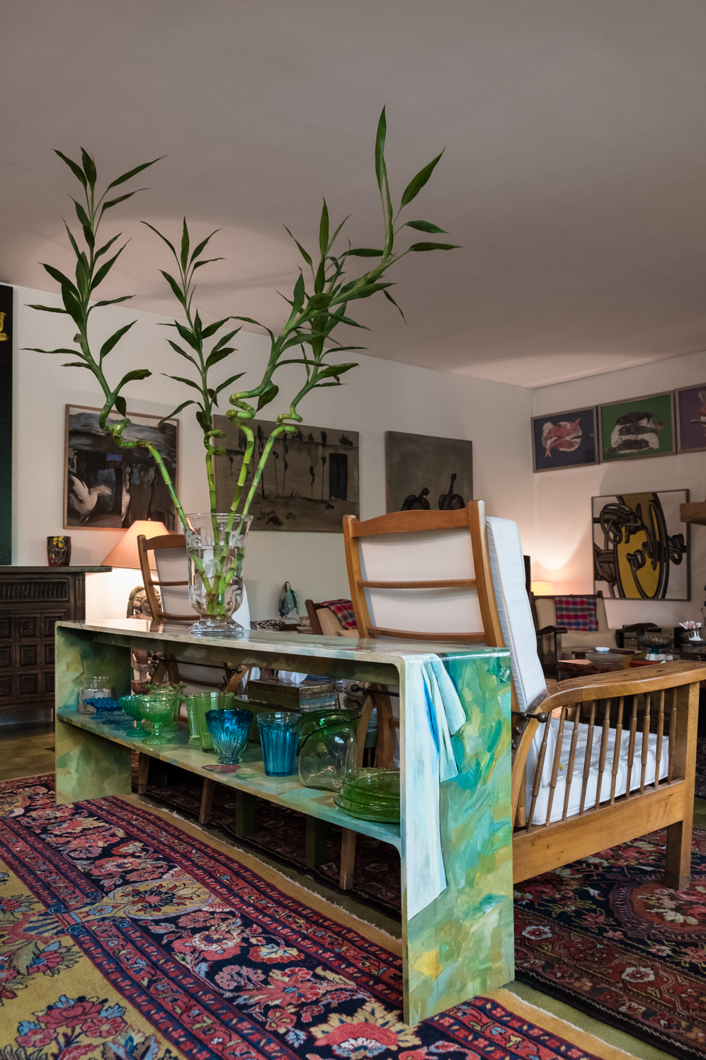 Was she ever afraid of anything? “The war; the bombings,” she responds, raising her head to the sky above her terrace. But she always remained fiercely loyal to her home country, including the obstacles and advantages that living here brings. “We’re staying to keep everything in our hands; we’re not going anywhere,” she says, referring to those who stayed in Iran after the revolution. Golestan initially supported the revolution and its successful efforts to overthrow the country’s monarchy and the ouster of Iran’s king, Shah Mohammad Reza Pahlavi. Her support didn’t last with the death of supreme leader Ayatollah Khomeini, following which “the country went the wrong way,” due to corruption. Nostalgia is not her thing, though. “The past is the past and it’s finished. I’m going to move forward. I will stay and I will work,” she says. And she is busy: Golestan Gallery is booked up until 2021, with one new exhibition opening every Friday, all featuring Iranian artists. “It’s a very strange country, with very strange people. Unpredictable, but very lovely. Challenges are interesting to me. When I go out of Iran, I get bored.”