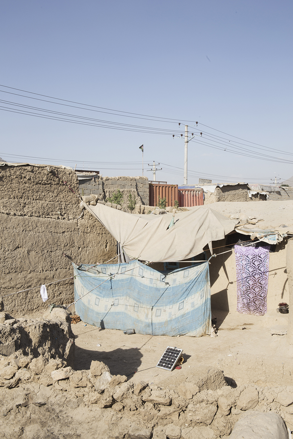 Many families use small solar cells in Helmand IDP Camp to generate electricity. 2017, Kabul, Afghanistan, Asia