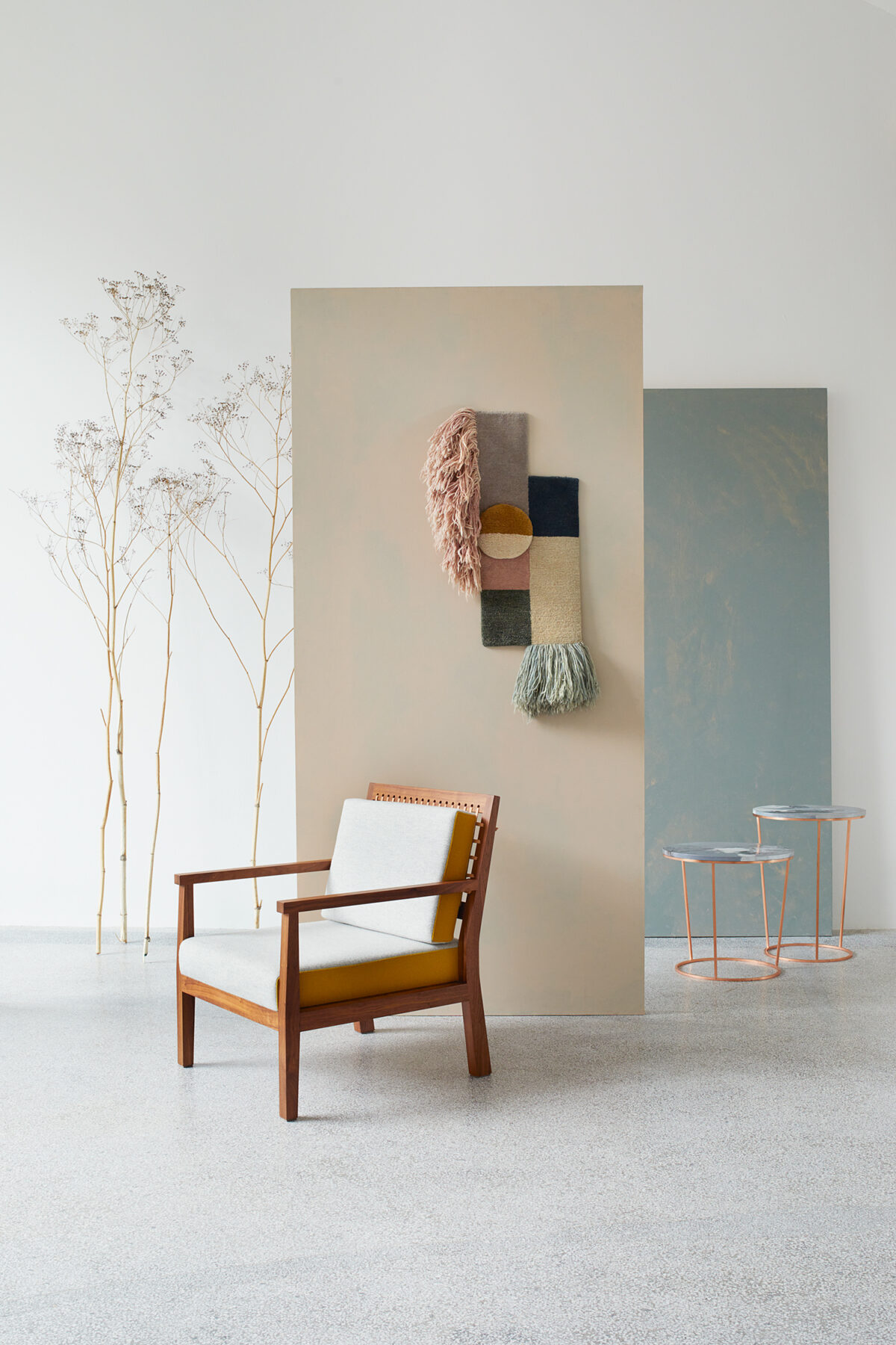 Ranging from furniture and lighting to textiles, carpets, and accessories, the exhibition is organized in six vignettes, each featuring works by multiple members of the collective. The juxtapositions draw on the diversity of the designers’ creative backgrounds (which include architecture, visual art, product design, and carpentry), and are conceived to express the values that shaped the birth of the collective and its support-structures for sharing ideas, struggles, and experiences: there are strength, poetry, and the desire to build a vibrant, more inclusive design-landscape.