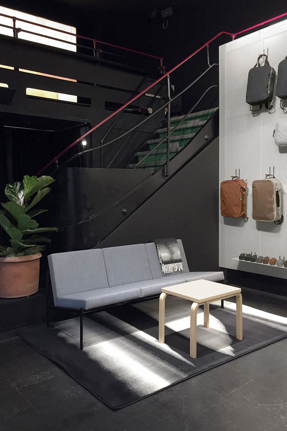 For the owners of the Swiss bag label QWSTION, direct customer contact was an important factor from the beginning and one that played a major role in their vision of an appropriate store concept. “We really considered why someone would still need to go shopping and came to the conclusion that the overall experience is important,” says Christian Kaegi, one of QWSTION’s five founders. He was actively involved in every step of the concept design. The team sought to meet the needs of a generation of consumers who value experiences at least as much as material goods and who don’t visit shops for the sole purpose of buying particular items, but also out of pure curiosity.