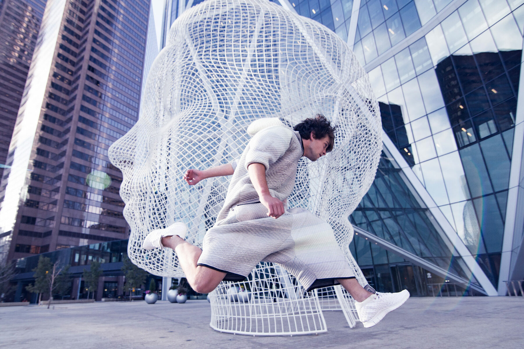 From a vibration-integrated pillow created to help dementia patients communicate to a music-playing, Wi-Fi and GPS tracker-incorporated onesie for SXSW, and an air-purifying suit designed to combat pollution in Beijing, Amsterdam-based textile designer Borre Akkersdijk created a name for himself experimenting with wearable technology. “I ended up in the tech scene because I was curious,” he says. It’s this enduring sense of curiosity that has been the driving force behind his work since graduating from the Eindhoven Design Academy in 2010; he now works with a team of likeminded individuals to push the boundaries of textile development, one thread at a time.