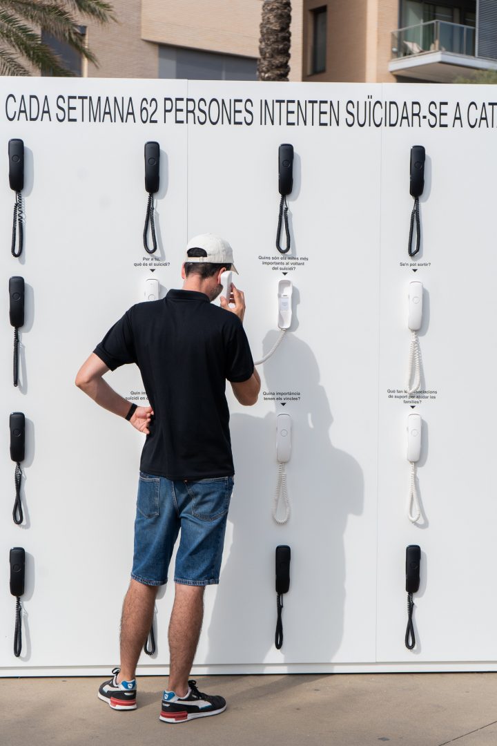 Much of their work involves building installations and exhibitions that provide audiences with experiences that are both immersive and informative. Recent projects include Conversations on Suicide, a portable cube fitted with 62 telephones—the same number of people who attempt to end their lives each week in Catalonia. The installation moves this number from the abstract to the tangible; 62 goes from being just a number to a series of voices with their own tales of struggle that can be related to on a very human level. The idea was to confront the stigma that surrounds talking about mental health and the cube was positioned in various public spaces where passersby can pick up a receiver to listen to a recording from someone who has experienced this kind of psychological crisis.