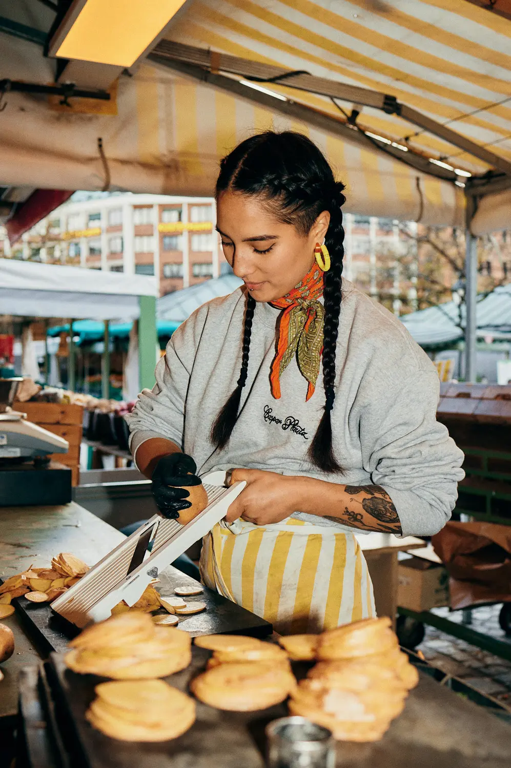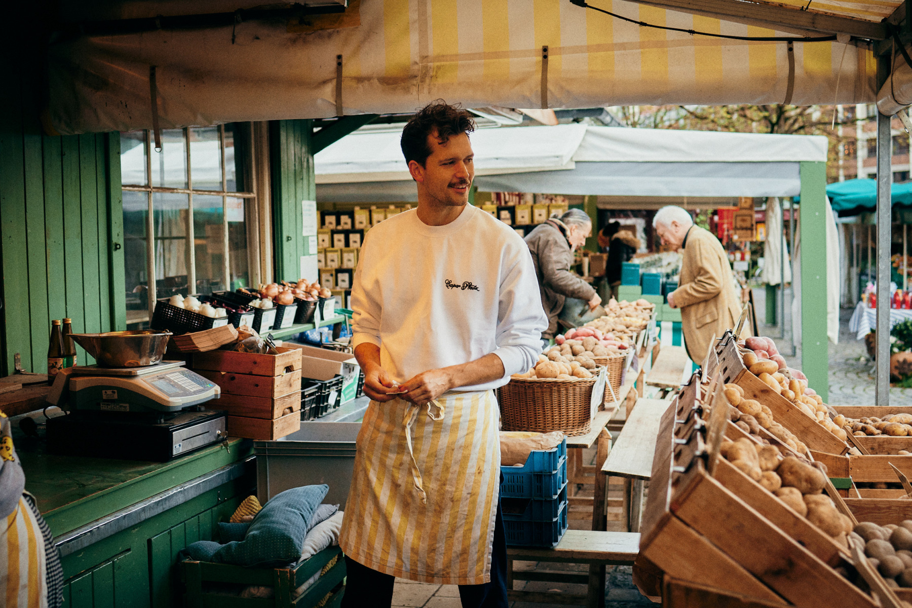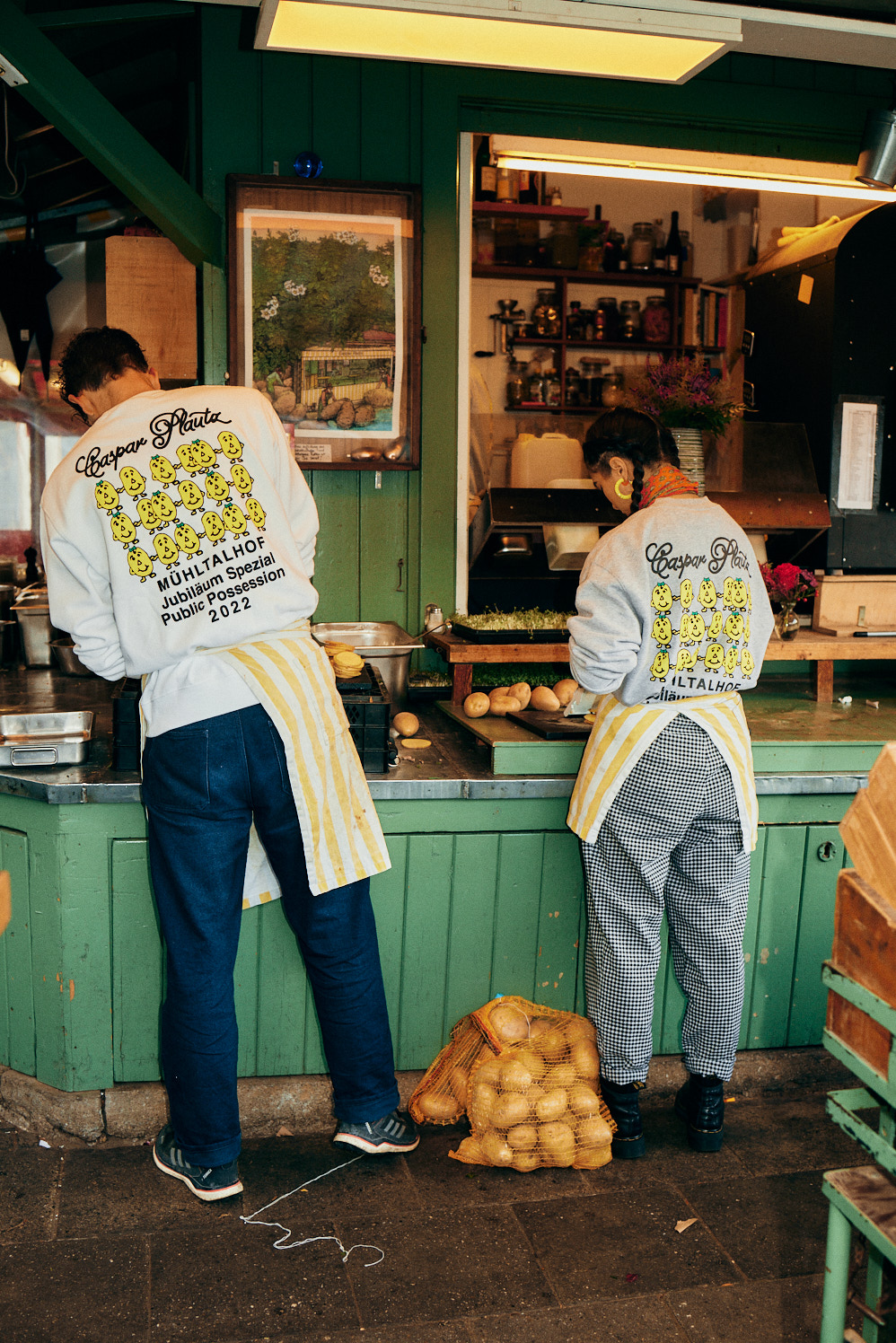 A local favorite of theirs, Caspar Plautz food stall and restaurant, is located on Viktualienmarkt. Public Possession collaborated with them to produce a special edition of sweatshirts and t-shirts.