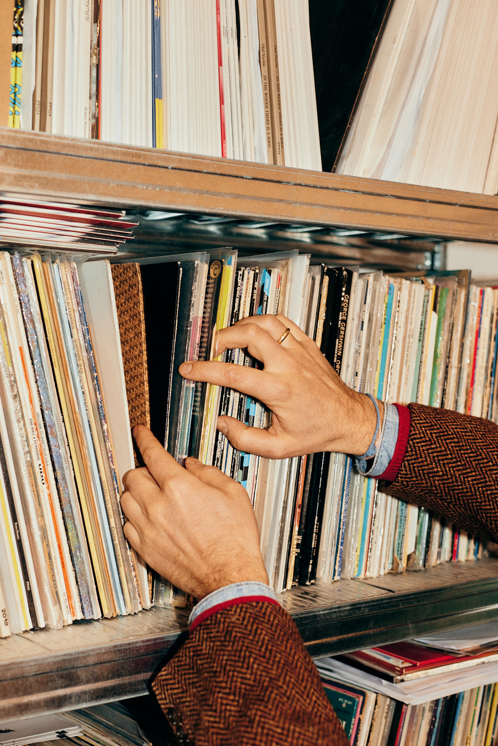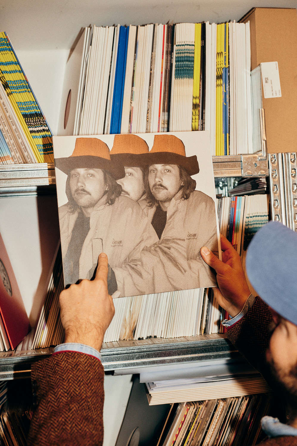 Valentino holding the Cover of Aiden Ayers Debut LP, released in October 2022. Together Marvin and Valentino curate their shelves with music they find fresh and interesting.