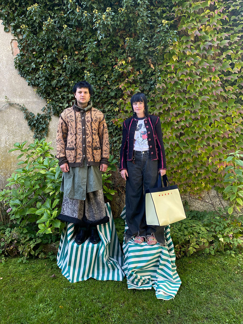 “Over time, also by growing up, you get to know yourself better. You appreciate good fabrics and materials and focus on pieces that you can combine again and again. Since the early beginning of our relationship, we share one closet. It has never been important to us to separate fashion by gender. Together we have a very varied look, which is also strengthened by many points. On the one hand, our look is very childish, because we can get involved in many things and combinations arise that are not well thought out. Moreover, we are not guided by trends but discover clothes through their history or the passion they awaken in us. You can really say that we have great fun dressing and rediscovering ourselves. This rediscovering process is ongoing for us, mixed with knowing what cuts and colors we feel comfortable in.”