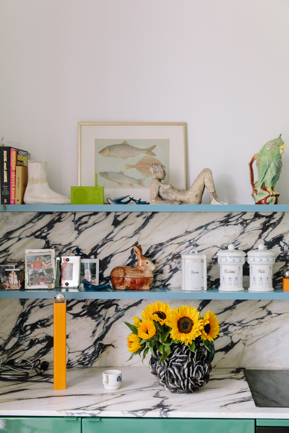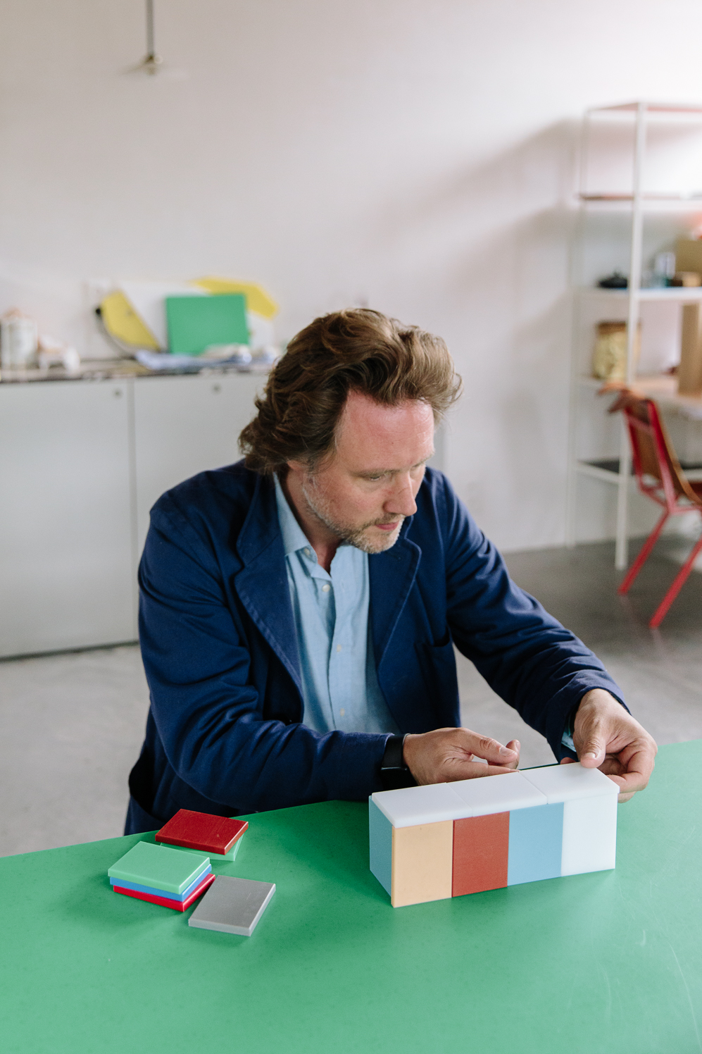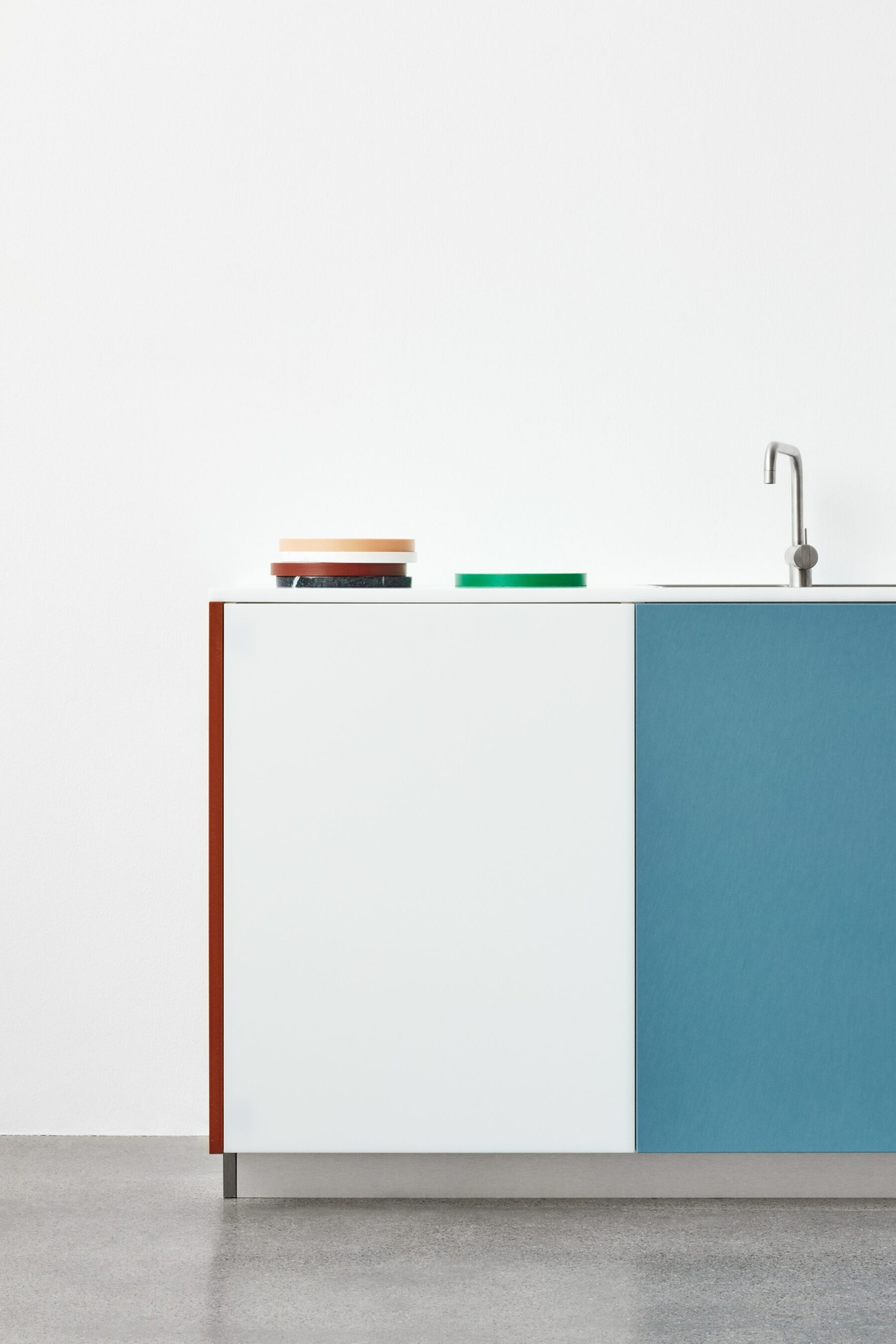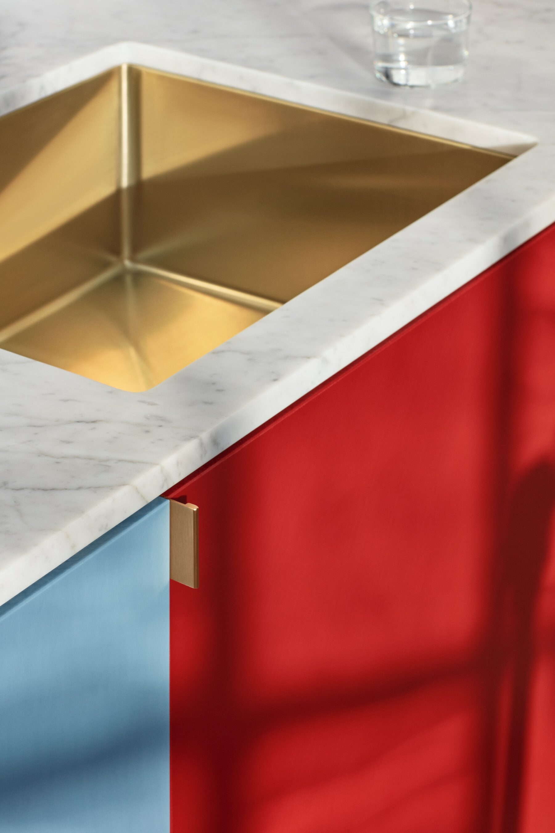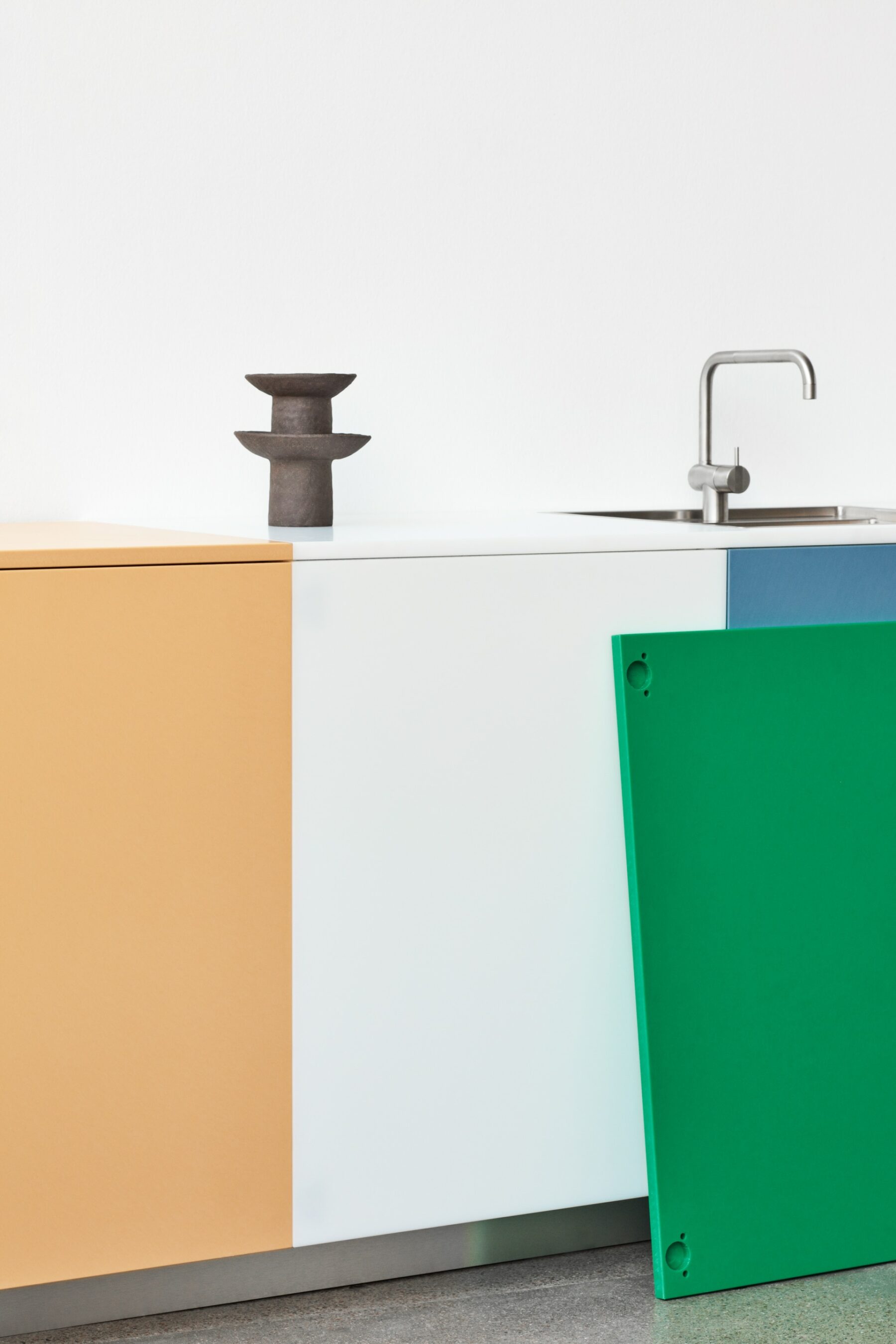 One such brand Muller Van Severen have worked with is the Danish kitchen company Reform. Founded in Copenhagen and now based in Berlin—with showrooms in cities such as Cologne, New York, and very soon L.A., Hamburg and Munich—Reform work with a plethora of different designers from all over the world to create kitchens that combine quality construction, function, and timeless design. For their kitchen design, which was released earlier this year, Muller Van Severen worked primarily with polyethylene, a “fantastic material” that they’ve used many times previously. “It’s like plastic, but not a dead plastic. It’s more like candle fat and it’s used in chopping boards,” explains Van Severen. “We wanted to work with it because of its connection to the kitchen industry,” he continues, explaining that they combined this modern synthetic material with more traditional ones like brass and marble. “They sit beautifully in harmony together,” says Muller. “Even though they come from completely different time periods,” adds Van Severen.