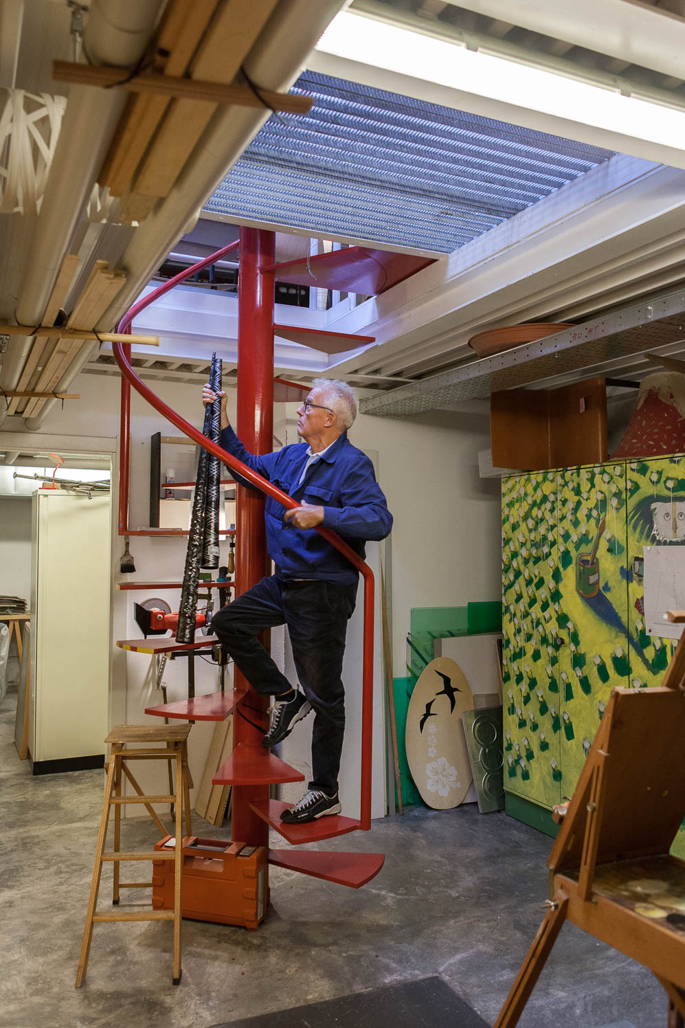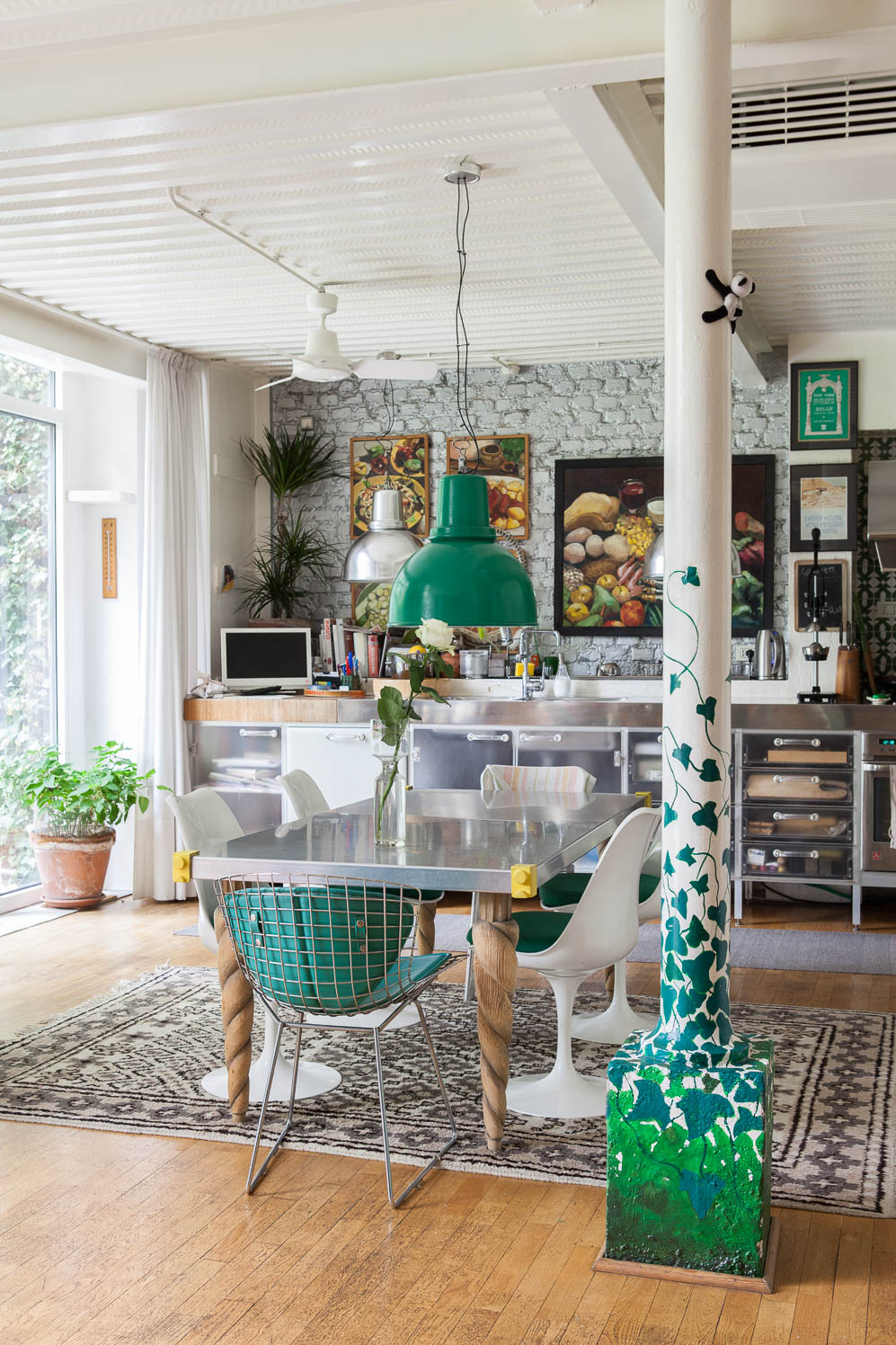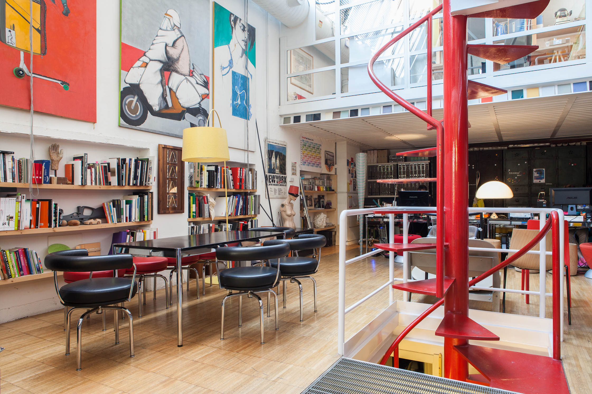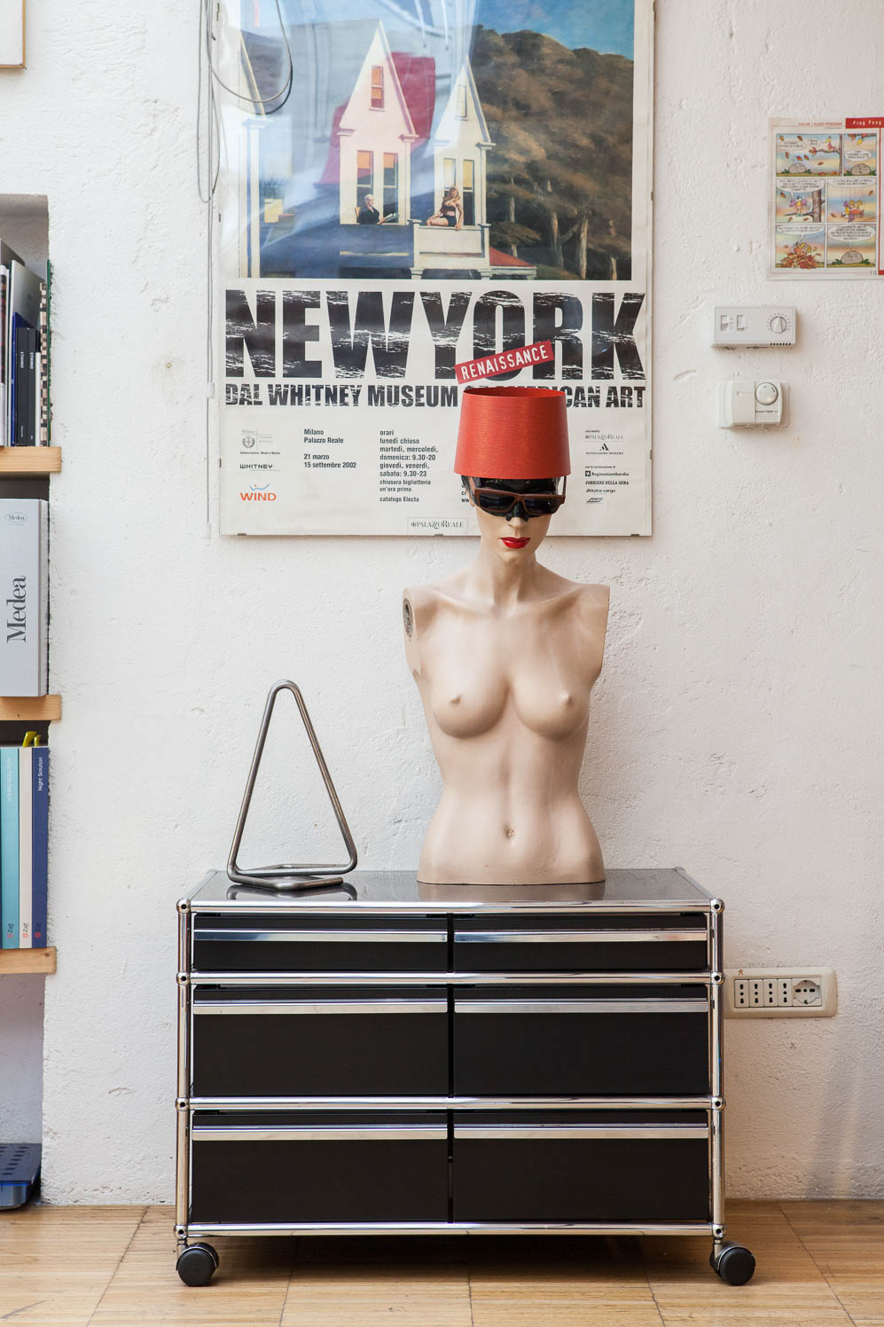 According to the pair, their home in Milan’s industrial estate, Zona Tortona, “is not really a designer house—it’s a mixed up house.” Filled with thoughtfully created, one-off objects, it developed in a piecemeal way, and is a space that feels lived-in rather than one for show. “The studio is quite similar in terms of feeling, but full of mock-ups,” says Marc. Whenever they start to make a new part of the house or office they begin with a certain idea for the project, but this then gets a waylaid. Colorful and clashing, the house is filled with artwork, much of which was drawn and painted by them. The two began painting when they moved to Venice, where they lived in a restored biscuit factory, “It’s a kind of no-man’s land. We were at a difficult point in our lives and decided to move because it’s such a special, beautiful place. The city has no logical indications.” Mapped out and spiraling like a maze, “house numbers are by chance.”