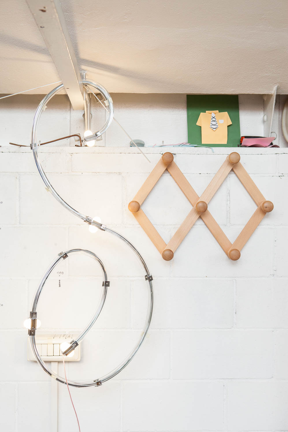 Their decision to eventually settle in Milan seems also to have been by chance. When working in industrial design in Italy, having a studio in Milan becomes essential, so Marc and Paola found an old factory in the industrial zone and decided to make their home there, too. In true industrial designer spirit, Marc is more interested in what can be made well with inexpensive materials, and on a large scale. We talk about the beauty of wooden toys—the sensation, the aesthetic including a favored colorful wooden Kendama that sits in their home. Focused on utility and replicability, Marc says how hard it is to find high-quality objects made with affordable material that can be widely distributed. “We’ve lost the link between popularity and reason. It’s hard to find reasonable objects that are playful.”