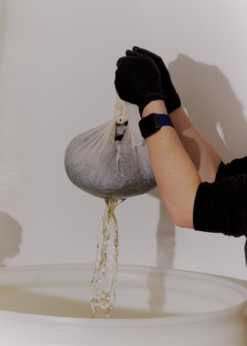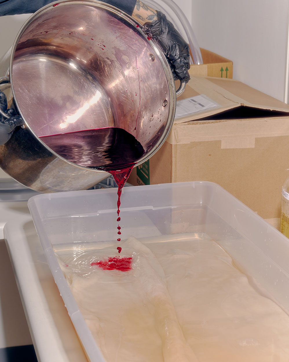 Cochineal dye by Slow Factory’s natural dyes collaborator Cara Marie Piazza (right).