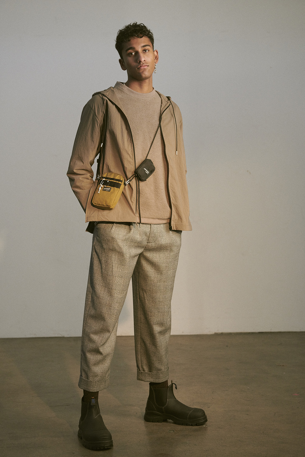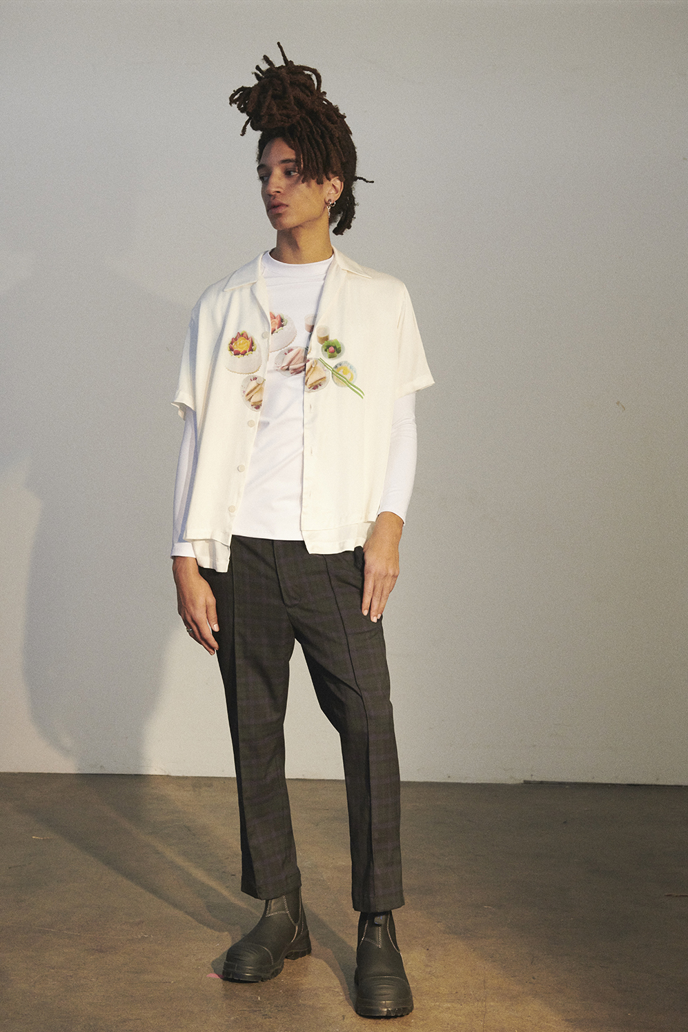 CL: At the moment we’re working on our Fall/Winter 2019 collection which will be in stores in early June. It’s based on the idea that in every single city you go to, whether it’s Berlin, Auckland, London, or New York, you will always see one guy in an alley with an apron on, smoking a cigarette. So the season was partially based on this weird international phenomenon of chefs on a break. We really like the idea of this character who you see in every major city, but isn’t from that city and is just toughing it out, working the line, going to culinary school, busting their ass, partying at night, stretching for a dream. We thought this person is probably slightly nostalgic for home but has also integrated into the different culture they’re in now, so the collection again displays this intersection between European and Asian influences.
