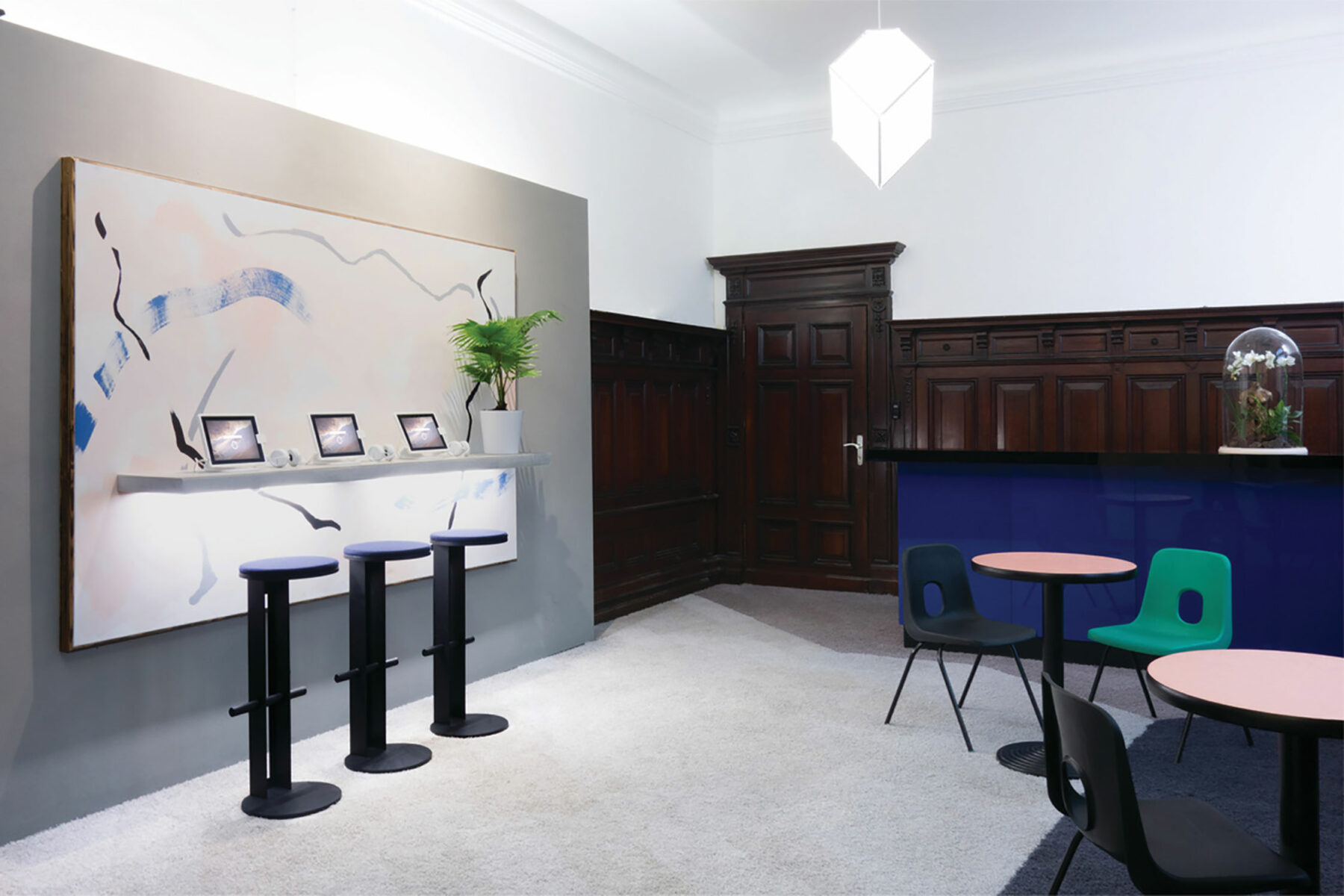 Whether by war, climate, or choice—we exist in a time characterised by accelerated dislocation. Christopher’s family come from a place that no longer exists: Eelam. For three decades during the Sri Lankan civil war, Eelam was an autonomous state governed by the Liberation Tigers of Tamil. But the neo-Marxist revolution ultimately fell, and the state was dissolved. Drawing from this illusory space, his exhibition New Eelam discusses the problems of modern living and proposes a post-capitalist venture as a solution. Christopher’s startup-come-artwork is a global housing subscription service based on collective ownership. It proposes the evolution of fluid citizenship, and new economic models based on communalism and mobility. The startup is presented within an installation work that draws heavily on an interior design style that one can’t help but liken to Kyle Chayka’s concept of AirSpace.