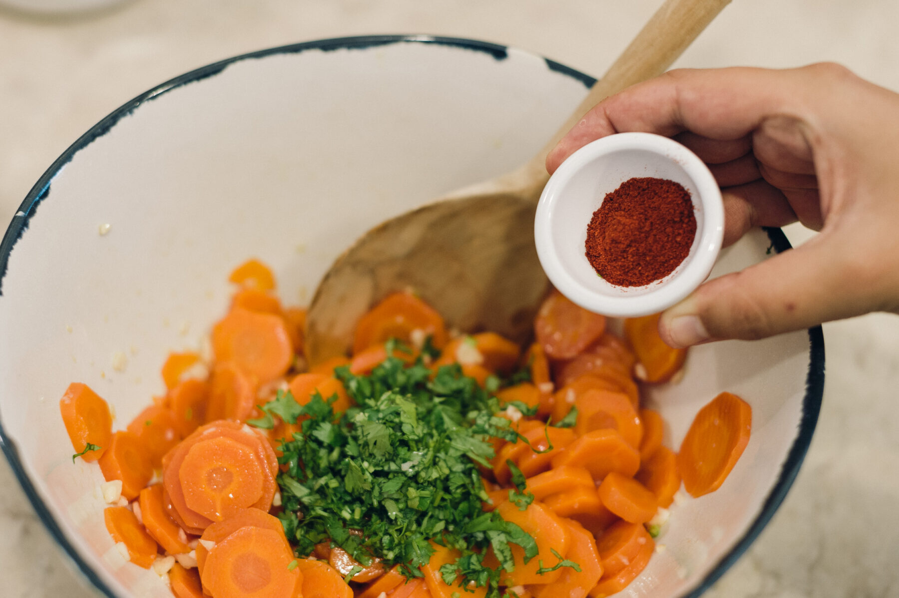 1. Boil the carrots in a pan with a lot of salted water until they are cooked but still a little bit crunchy.
