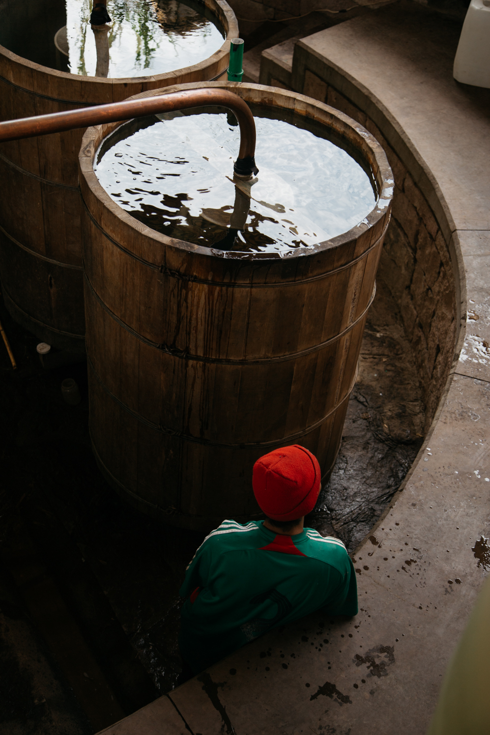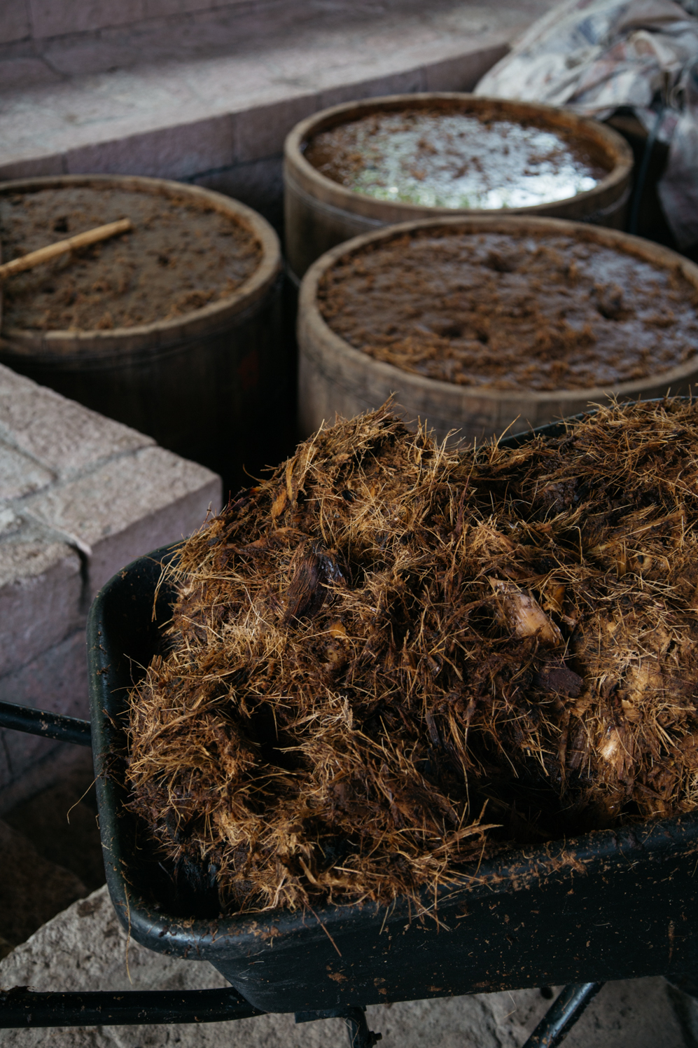 Aside from the raw material’s unique nature, what grants mezcal its charm is the complexity of the production process. It’s certainly no mean feat – a series of arduous tasks is essential for the elixir to flow in all its transparent glory. After harvesting the agave plants’ piñas, or hearts, they cook them in stone-lined pits over wood fires of oak or mesquite. The maestro mezcalero’s maxim is quite simple: no stone pit, no smokiness; no smokiness, no artisanal mezcal. Out of superstition, if an outsider visits the palenque at this stage, they’re asked to throw one of the hearts in the fire to avoid mal de ojo: bad luck. Here, the choice of wood introduces the first influences on the final taste of the spirit. When the magueys are cooked, they’re mashed in large stone grinders pulled by horses to prepare for fermentation. Inside exposed wooden vats, the agave pulp is left to ferment with naturally-occurring yeast found on tools, clothes and the handlers’ skin. Many wooden vats have their own names and sometimes host drawn crosses, inviting the divine element to do its part. Smell and taste are the distillers’ only instruments to decide whether fermentation is finished. During fermentation, almost two-thirds of the final product are defined, thus, distillation can only deduct certain elements but not introduce new ones. By law and tradition, two distillations are required to procure the cuerpo (body) and the collas (tails). To determine the standards of the liquor, producers use a method called “pearling,” where they pour the young spirit in a gourd bowl with a hollow cane. The pearls forming on the surface are indicators of quality, but can also reveal the alcoholic content to the experienced eye. In comparison to whisky, mezcal is best left to mature in neutral containers made out of glass or clay, to avoid shrouding the delicate aromas of the agave. As it ages, it becomes rounder and smoother, but many agree that great mezcal is unmediated by oak or any form of long-term aging. A movement of purists believe mezcal should be white/young, have at least 47% alcohol, and be served in its truest form, not left to age in barrels or mixed with other ingredients. In the world of mezcal production, each business uses its own acknowledged techniques that have been passed down from generation to generation and optimized for years. Even if a relatively small step of the traditional cycle changed, the process would be robbed of its holistic nature and the end product would not compare to previous standards of quality. With mezcal, there’s no perfect recipe, as expertise relies mostly on empirical factors.
