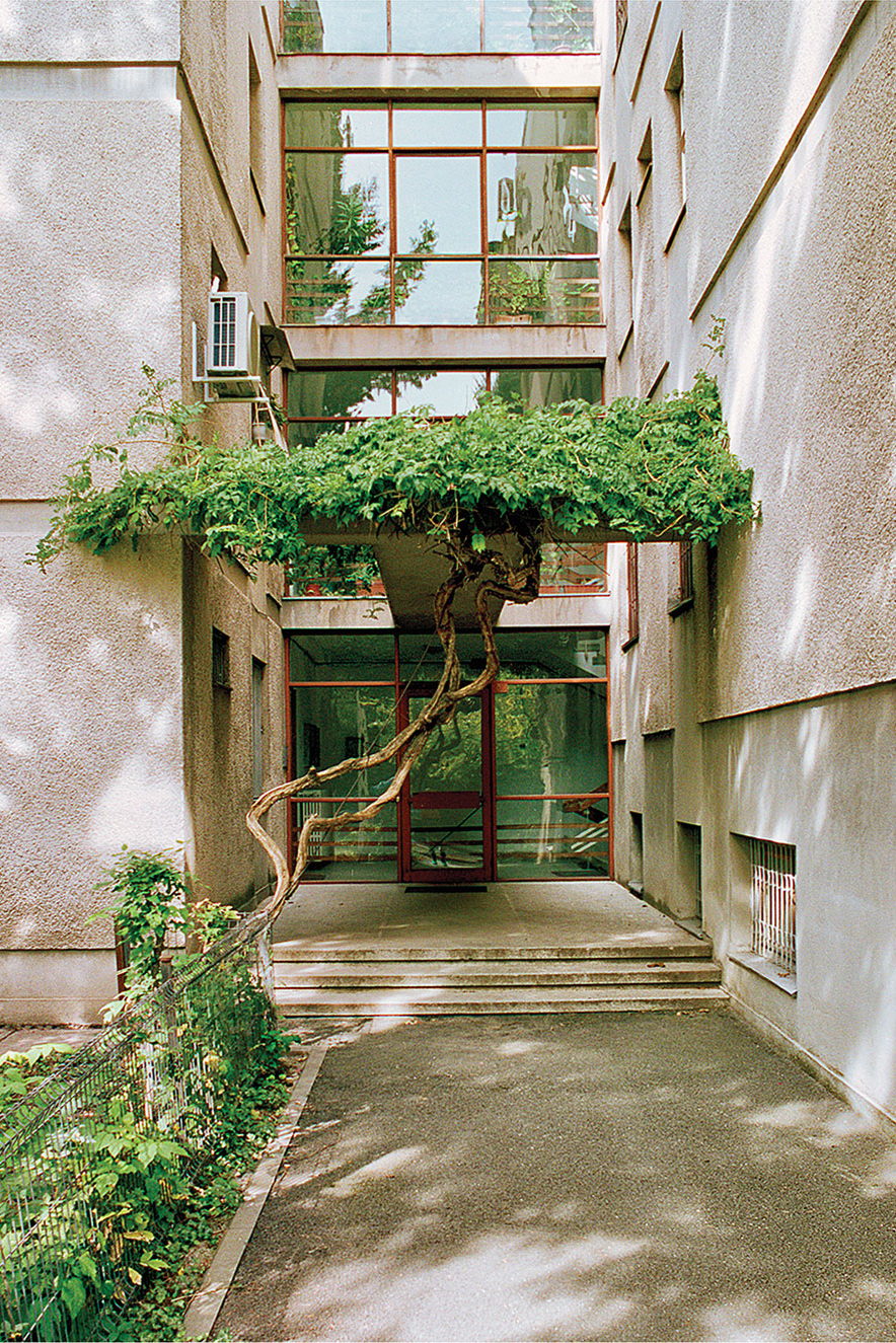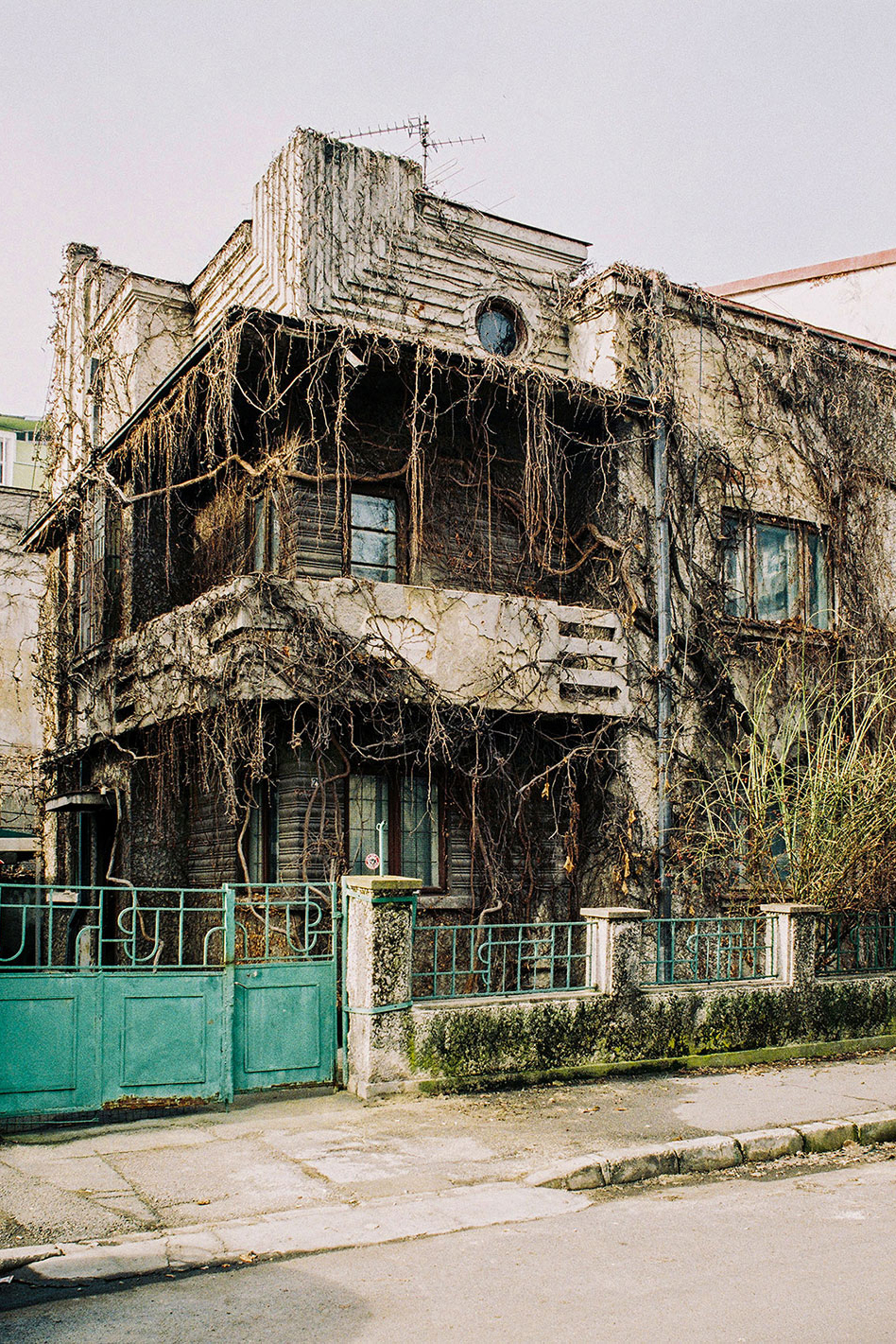 From pastel pink, geometric building blocks to spiraling, concrete staircases, the images in Modernist Bucharest display a wide variety of structures, many of which are overgrown with rambling vegetation. Shot on 35mm film, the series is imbued with a romantic sense of nostalgia, which, according to Anghel, was a conscious decision. “There is a clear connection between the age of these buildings and the format in which one presents them. Nowadays, digital photography has become so technologically advanced and it’s too sleek for my taste. For me, film photography offers a more sincere image.”