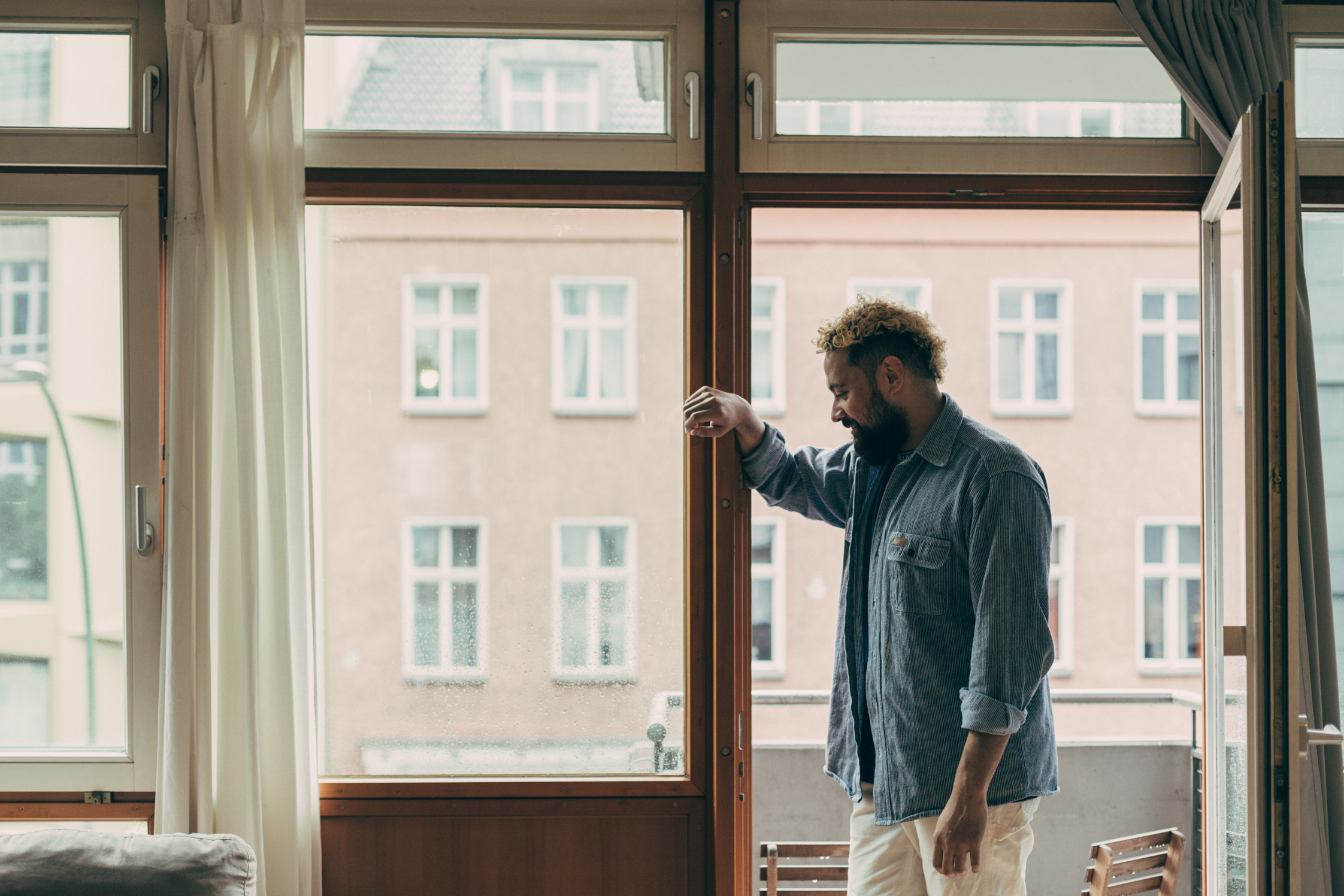 Noah Slee has bleached his dark curls. “I needed a Beyoncé moment,” he exclaims, laughing. It’s the launch day of the Berlin-based musician’s new single, Soulflower, the first single of Twice, his second record. His guitar in one hand, a glass of prosecco in the other, he wears a beam of satisfaction. It’s been two years since his debut album, Otherland, a striking fusion of R&B and soul that drew inspiration from Slee’s manifold personal experiences. In hindsight, Slee describes it as deep, hopeful, and groovy. “However deep the story, it’s gotta be groovy. It’s my favorite way to write music,” he says. How do the new tunes differ from Otherland? “Not that Otherland was super serious, but I’m more relaxed and don’t give a fuck in terms of what I want to say and how I want to say it,” he says. His audience’s appreciation has given him a lot of confidence, something the EP reflects beyond doubt. In part, it addresses hurdles he recently tackled. Hold on, Stop Me speaks about having three throat operations that, though not life-threatening, burdened him while finding his voice as a musician. “A lot of people have health issues, it’s just part of life,” he says, referring to the fact that he translates his experiences in a breezy way. Because, before everything else, Slee’s work is relatable, and suits almost every scenario. The song also touches on valuing life: “It’s quite self-affirming, too, you know?”