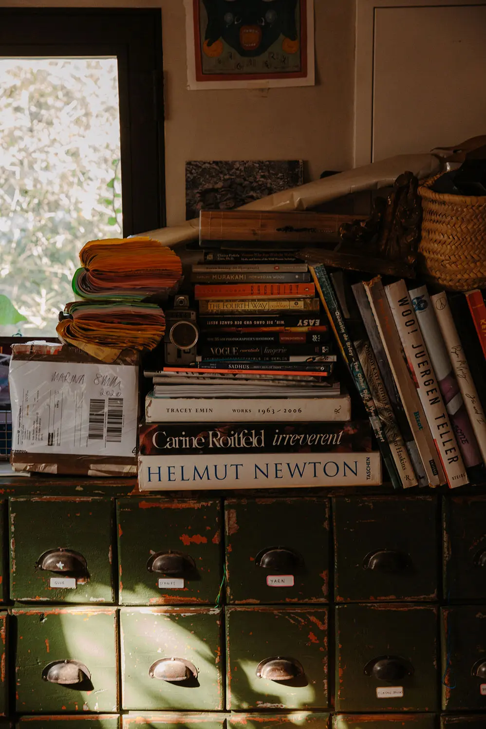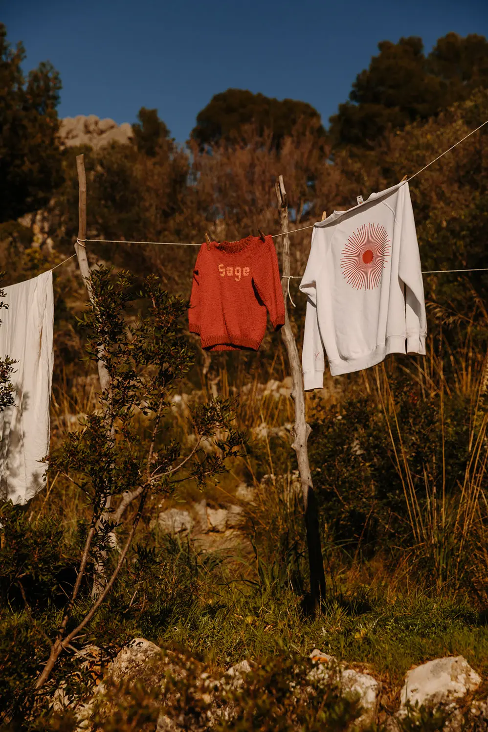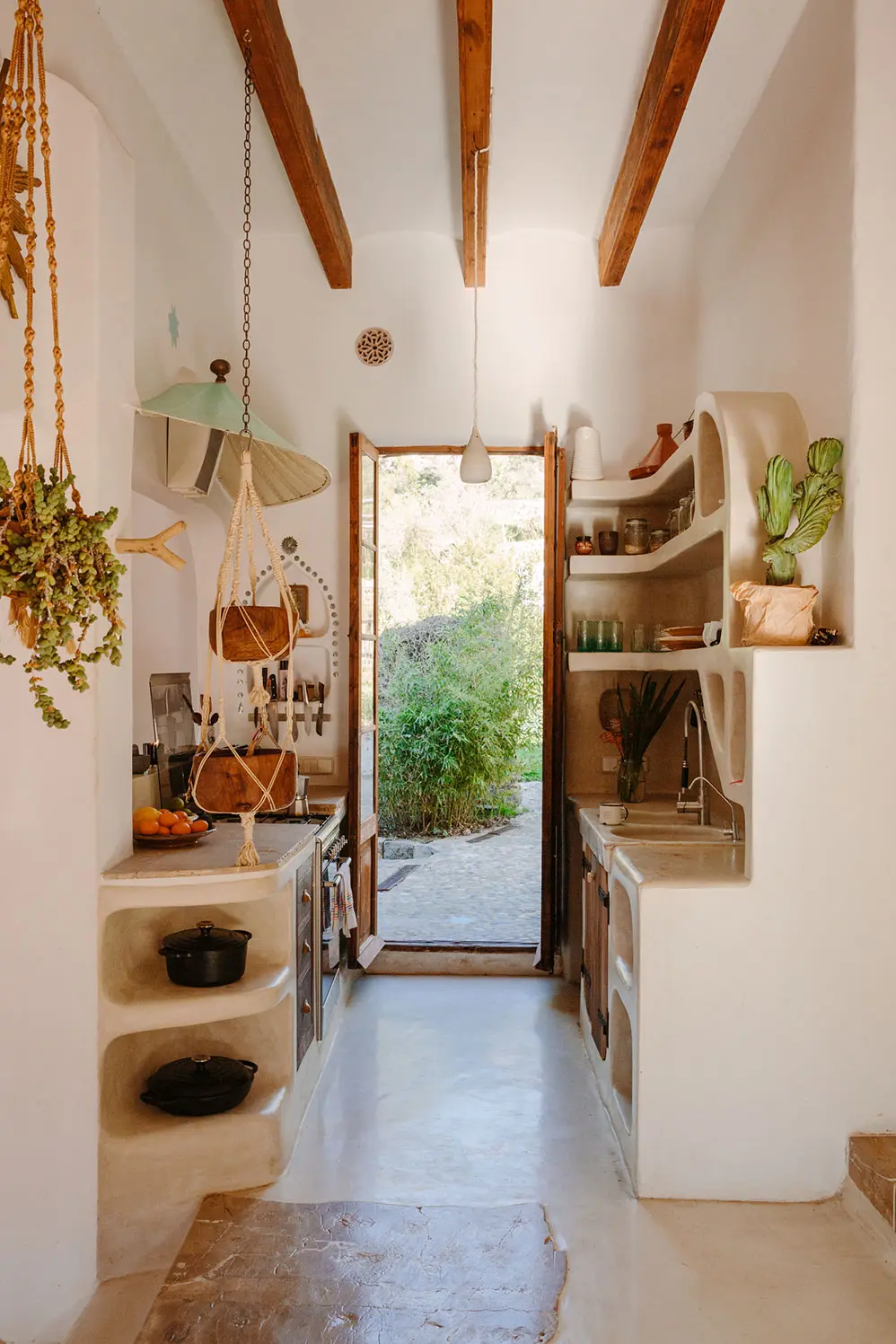 While she has lived and worked all over the world, with an often impulsive attitude to relocation—”I’ve always moved to a country in the space of a week. I visit places for the first time and then think, ok, I’m moving there,”—Bellm decided to settle down for good six years ago when she moved to the Spanish island of Mallorca with her husband, Edgar, and son, Sage. Initially, island life was hard to adapt to. “I was really scared to leave the city, all my friends, the whole vibe, and move out into nature,” says Bellm. “For the first five years I couldn’t accept that this was my home. There are less options here than in the city. It’s a simple life, with the ocean and good food. Sometimes, the hot water doesn’t work, or the electricity. It’s real mountain life, off the grid style. But now I’m used to it, and I can’t ever imagine moving back to the city.”