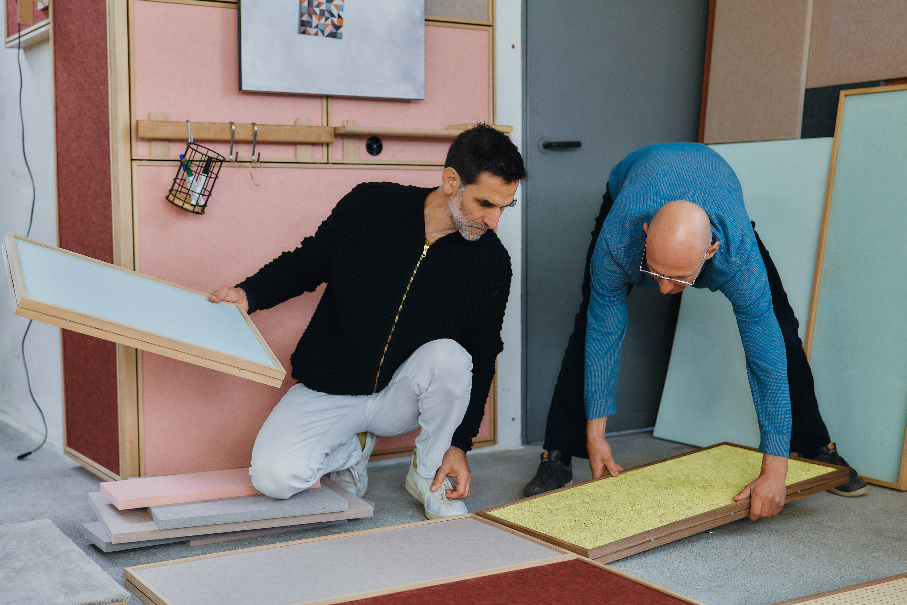 Together with Impact Acoustic, Yves and Tom designed an eco-intelligent acoustic panel that challenges the usual aesthetics of upcycled materials.