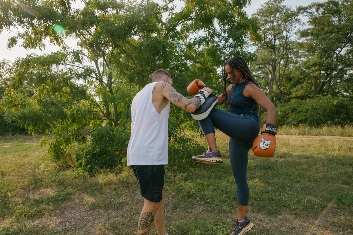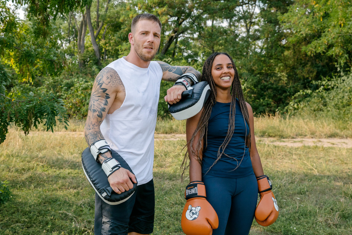 Khadija is pictured here with her kickboxing trainer and friend Yannik.