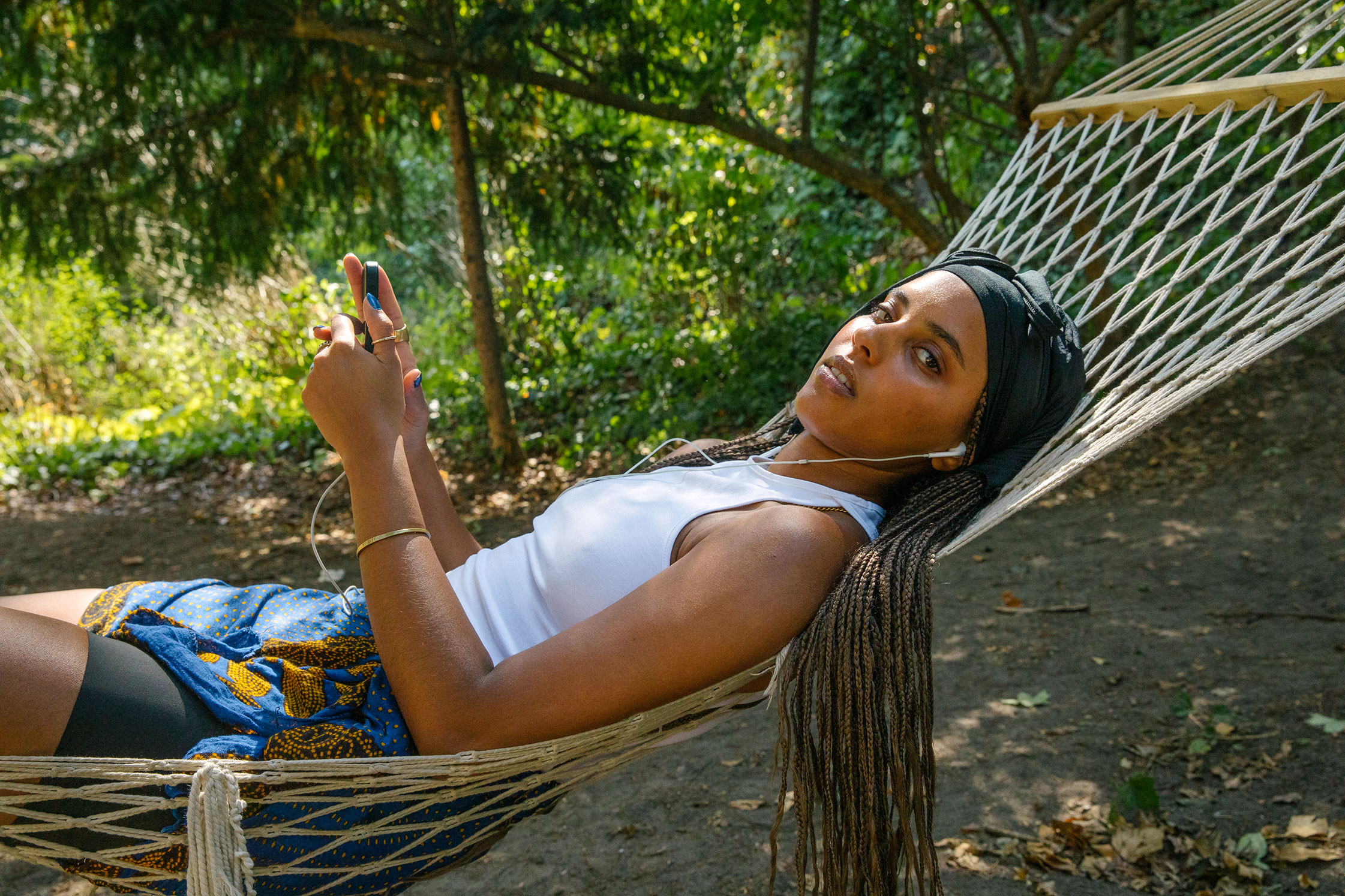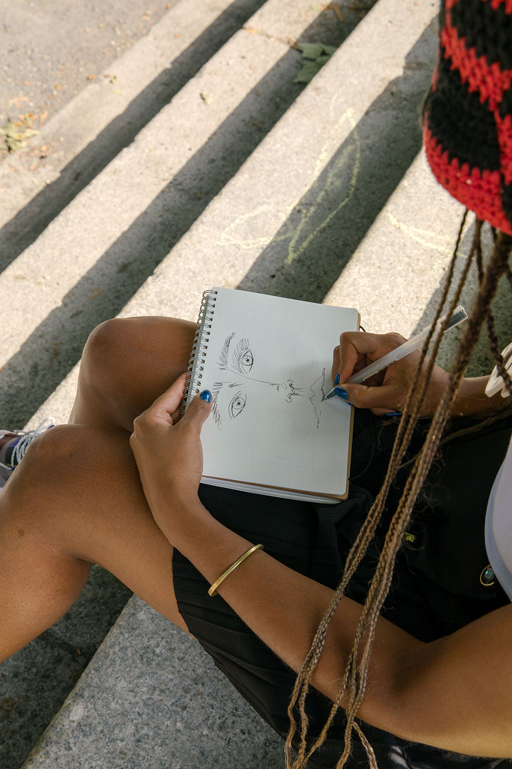 It was very tough growing up. People were finger-pointing me because I looked different, be it in school or even in the community. I am also the darkest in my family… and not only were we a Muslim family of about 50 Eritrean families in Pforzheim, but we were also Arabs who spoke Arabic and went to an Arabic school. I asked myself “How can we fit in?,” and internalized that question until I was 19. I was living a completely made-out-of-people’s-perception identity. I started playing basketball and singing, things that are very cliché for Black people, as it is being in the entertainment industry. So, I started questioning if that was something I actually wanted to do. The older I get, the more I feel like it’s a superpower: being a Muslim Black woman is a superpower. I’m very thankful to be Muslim, to be Black, to be a woman. In my work, I think of art as a free space. When I was younger, I was very punk-minded, and I felt intrigued to become a professional artist because of what I symbolize. Society does not want me to be in the artistic space, but I’m proving to myself that it is possible. That drive comes from my upbringing. My parents taught us discipline: how to sit, how to talk. Everything was structured but at the same time, we talked about philosophical topics, too. I was given a lot of trust on an intellectual level. This is because the tribe my mum comes from is very open and has a very collective approach to raising children.