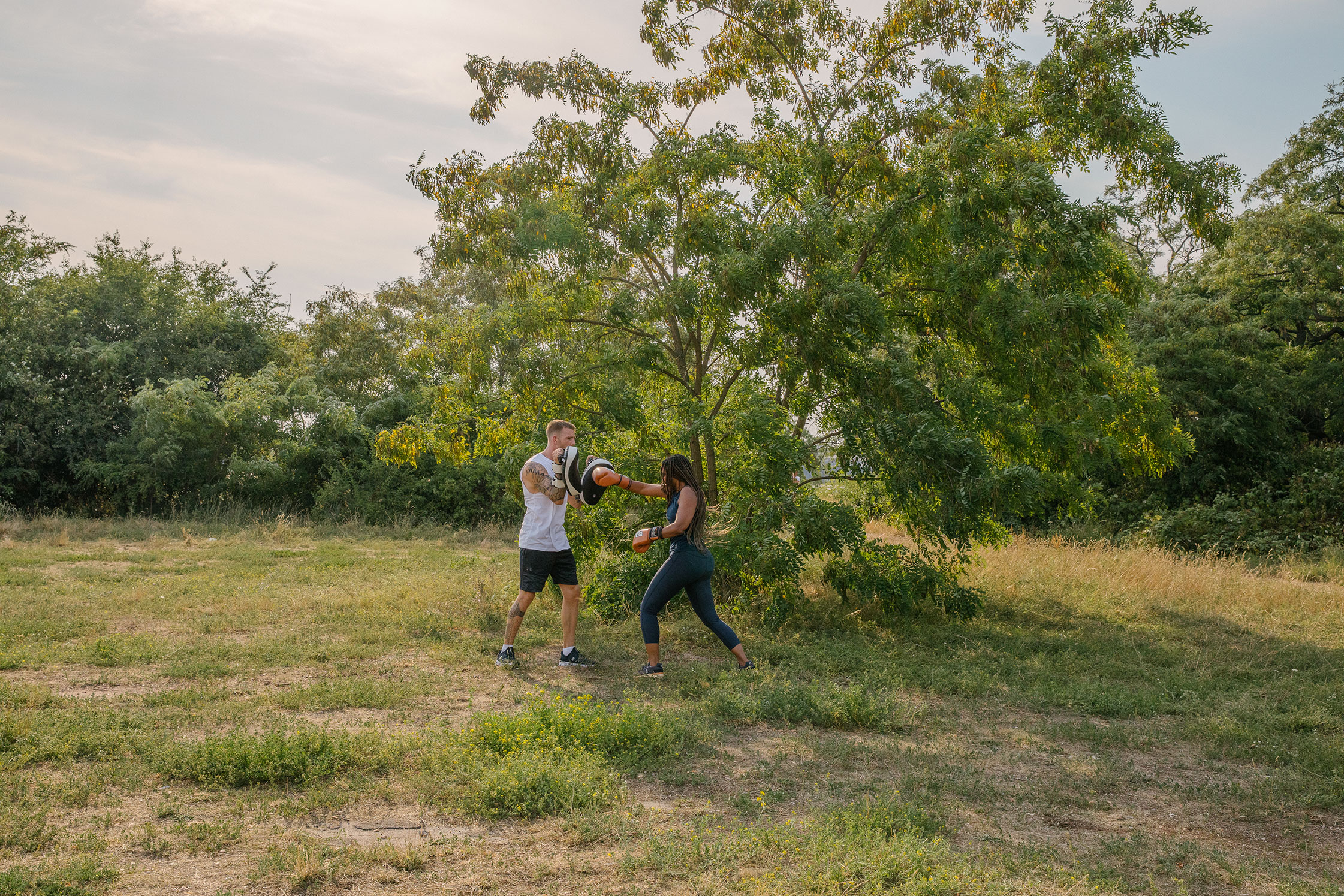 We visited Tempelhofer Feld with Khadija and she showed us some of her kickboxing moves.