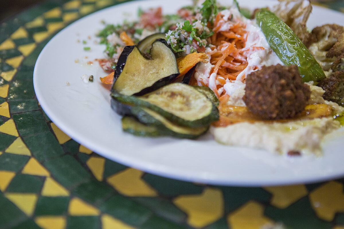 The classics: what do you think of a big mixed plate? Shawarma, falafel, grilled vegetables, halloumi and hummus, of course. It’s almost a bit of everything – and it’s all delicious.