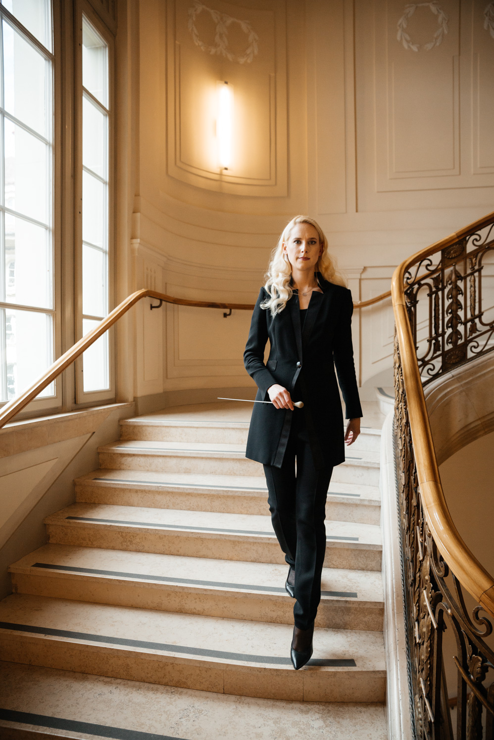 But what does the conductor of an orchestra actually do? On the one hand, she coordinates the ensemble; on the other, she interprets the material: “If you gave five different film directors the same script and asked them to make a film out of it, you would get five different films, all telling the same story but each in a different way. It’s the same if you give one musical score to five different conductors.” She finds it difficult to put her own style into words. Music and sounds are not easy to describe.