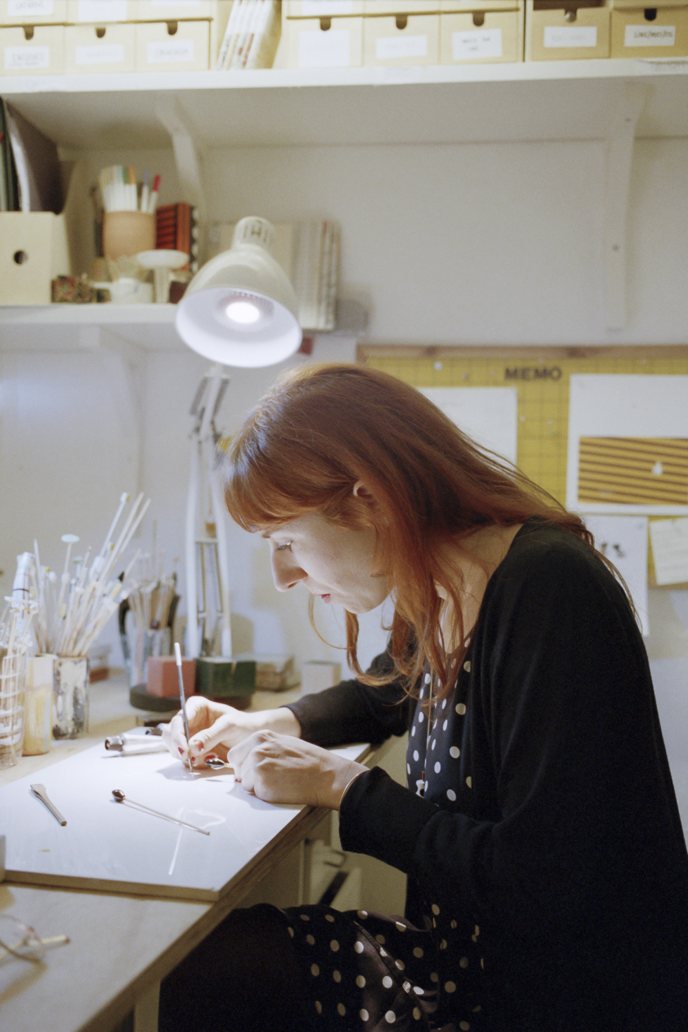 Designing new pieces is something I enjoy a great deal because of the creative challenge it presents and the way it pushes me to learn new things. I find color mixing and painting the pieces very entertaining. If it’s a quiet day in the studio, it becomes a sort of meditative exercise.