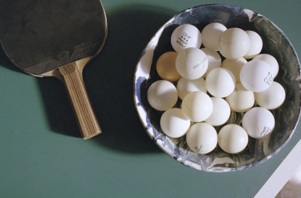 To be honest, I don’t have a clue. Ever since the first time I played it, I’ve been fascinated by its aesthetic and logic. Three years ago I had an accident – I broke a bone in my hand and had to stop doing yoga, one of my favorite activities, so, as a joke, my physiotherapist suggested I tried ping-pong instead. I took it seriously and I’ve been hooked ever since. I never played it as a kid!