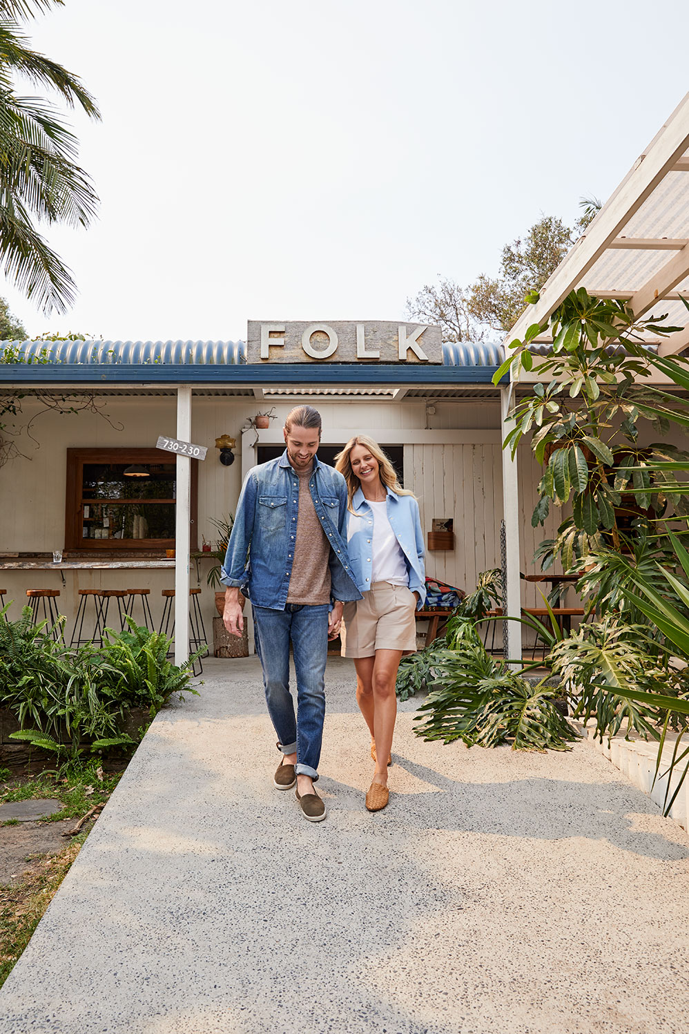 Sam and Saasha grew up in Melbourne where they studied communication and advertising, respectively. Sam added an MBA to his resume, the course for which he completed between Melbourne and St. Gallen in Switzerland. From Switzerland, the couple embarked on many travels, finding inspiration in a myriad of European cultures, which later fueled the foundation for their company. Before relocating to Byron Bay, the couple lived in Sydney where Sam worked for Daimler and Saasha modeled for local and international fashion brands—a time they describe as very busy, but which laid a strong foundation of an incredible work ethic, Sam reports. A palm tree falls down behind us as Sam enthuses over the high living standards in Byron Bay. He chuckles as Saasha chimes in: “This wouldn’t necessarily happen in Melbourne.”